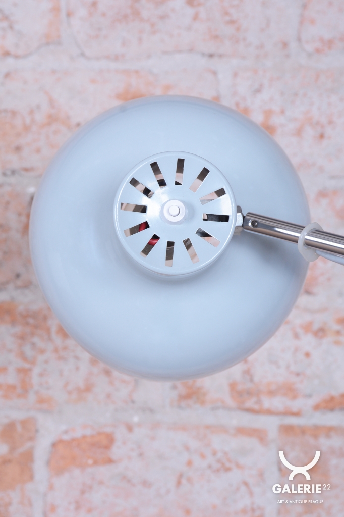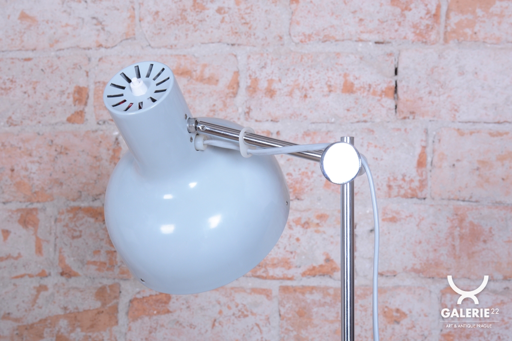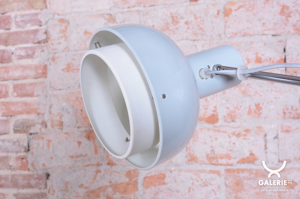 Jedná se o sběratelsky ceněný kus od proslulého výrobce NAPAKO, často připisovaný legendárnímu designérovi Josefu Hůrkovi. Lampa je vyrobena z elegantní kombinace lesklého chromu a lakované oceli.