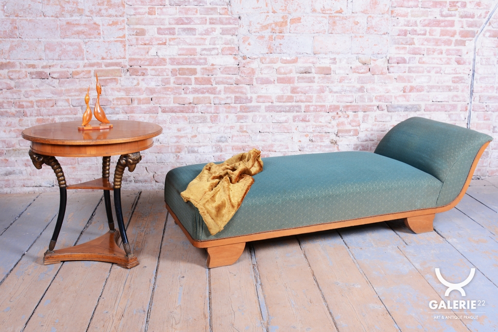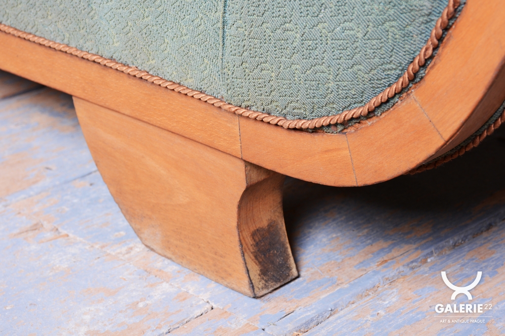 Tato elegantní pohovka ve stylu Art Deco pochází z Československa z 20. let 20. století. Je ztělesněním dekorativní elegance a pohodlí, typického pro tuto éru.