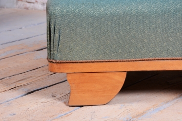 Konstrukce pohovky je zhotovena z masivního bukového dřeva, které prošlo pečlivou renovací a má oživenou původní polituru, zdůrazňující přirozenou krásu materiálu. Pohovka je vybavena tradičním pružinovým čalouněním, které zajišťuje komfort.