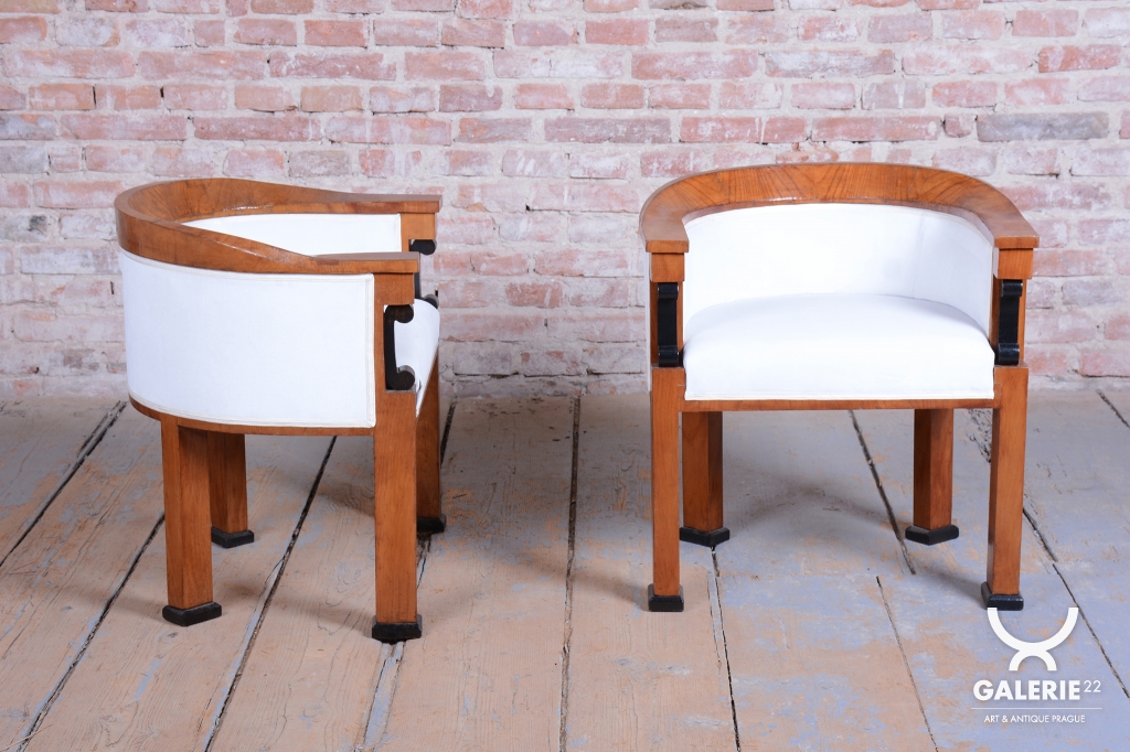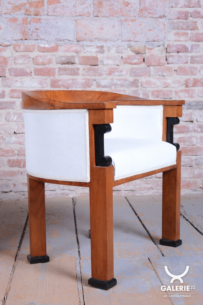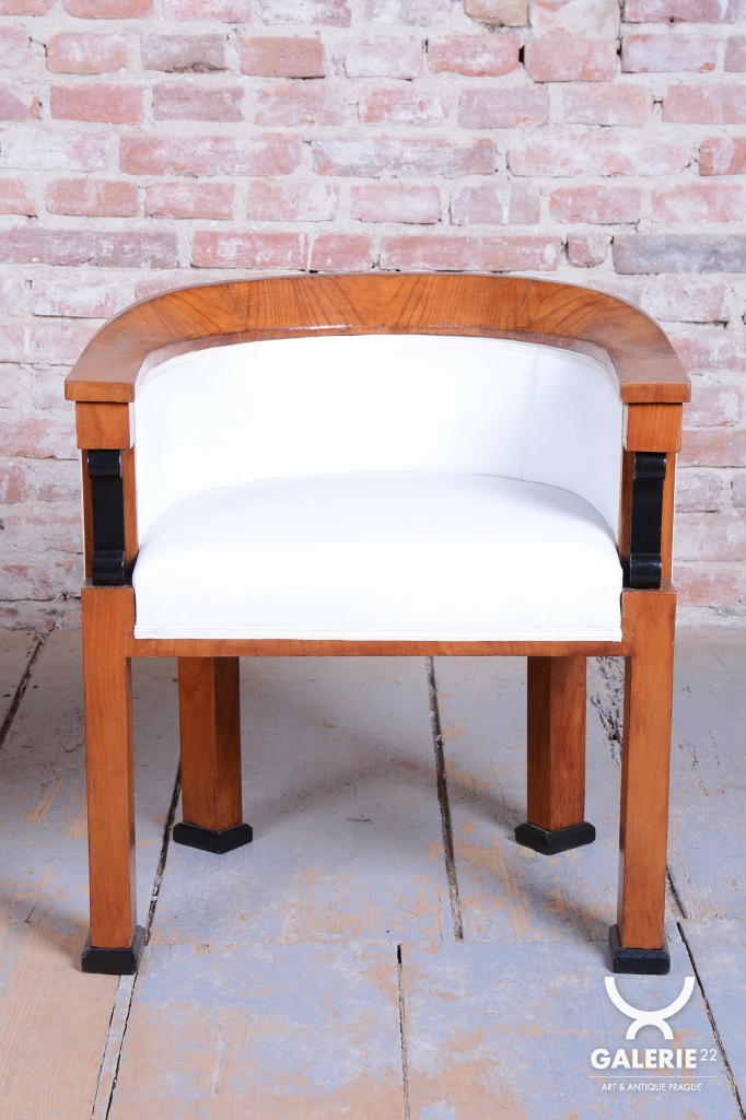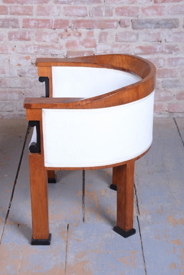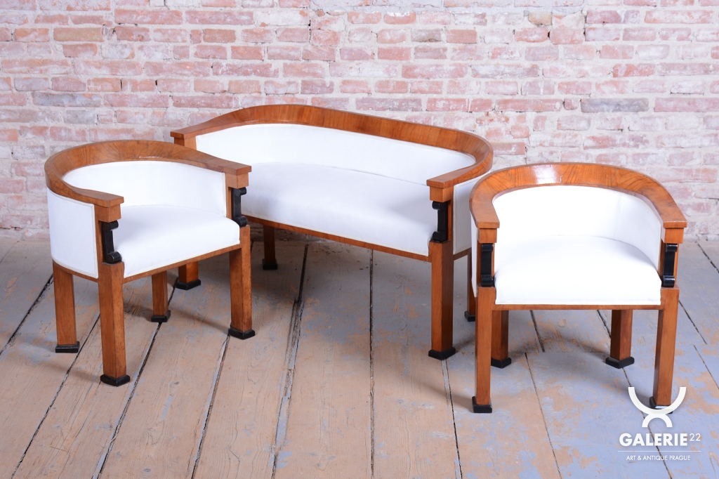 Tato elegantní sedací souprava ve stylu Empír pochází z Rakouska z poloviny 19. století. Je ztělesněním vznešenosti a symetrie, charakteristické pro toto historické období.