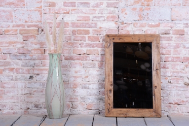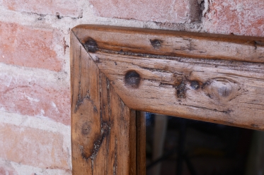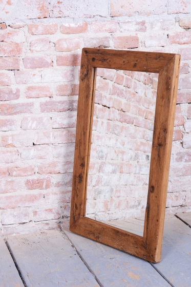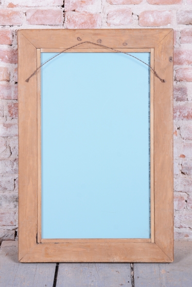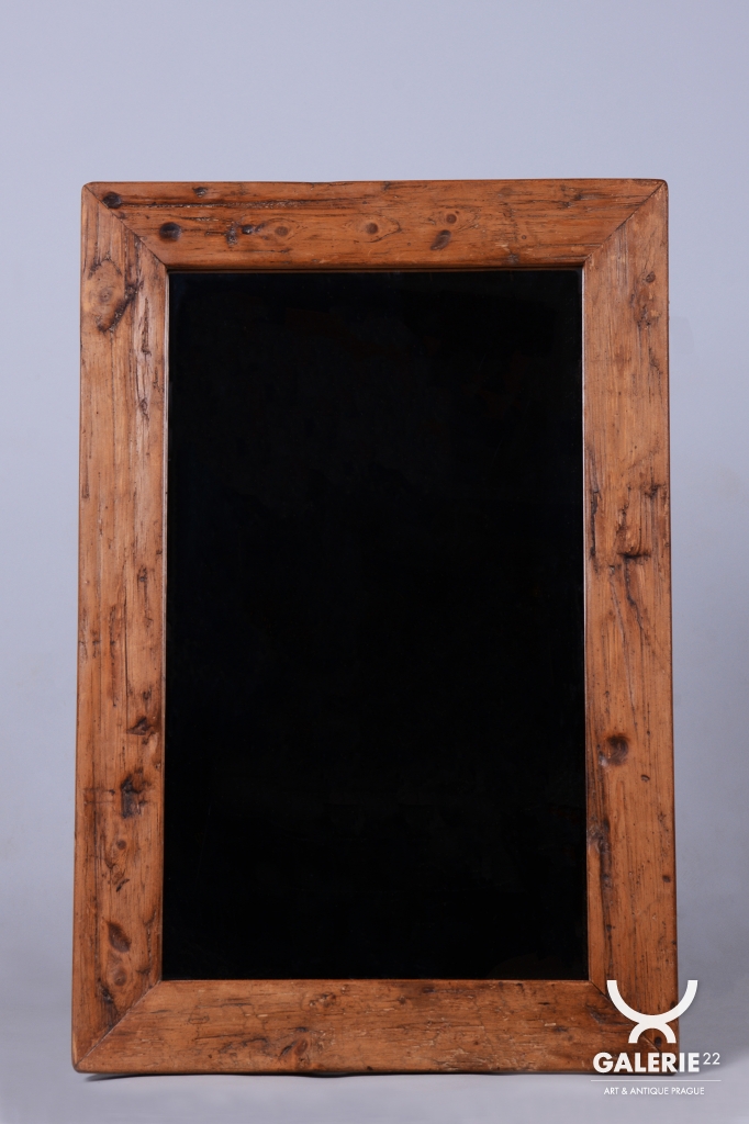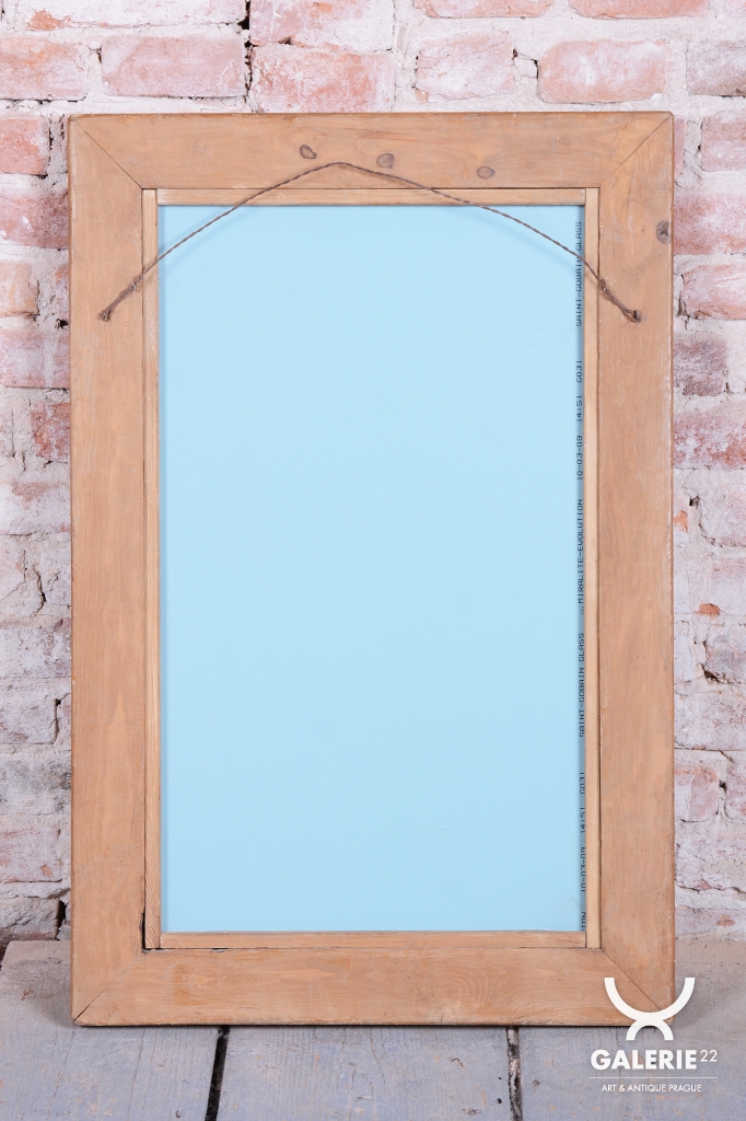 Rám zrcadla je zhotoven z masivního borovicového dřeva, které mu dodává hřejivý a přírodní charakter. Celý rám prošel pečlivou renovací, během níž byla oživená původní politura, která podtrhuje autenticitu a patinu dřeva.
