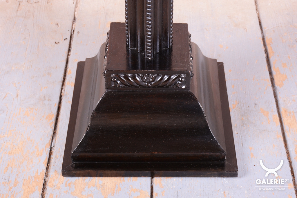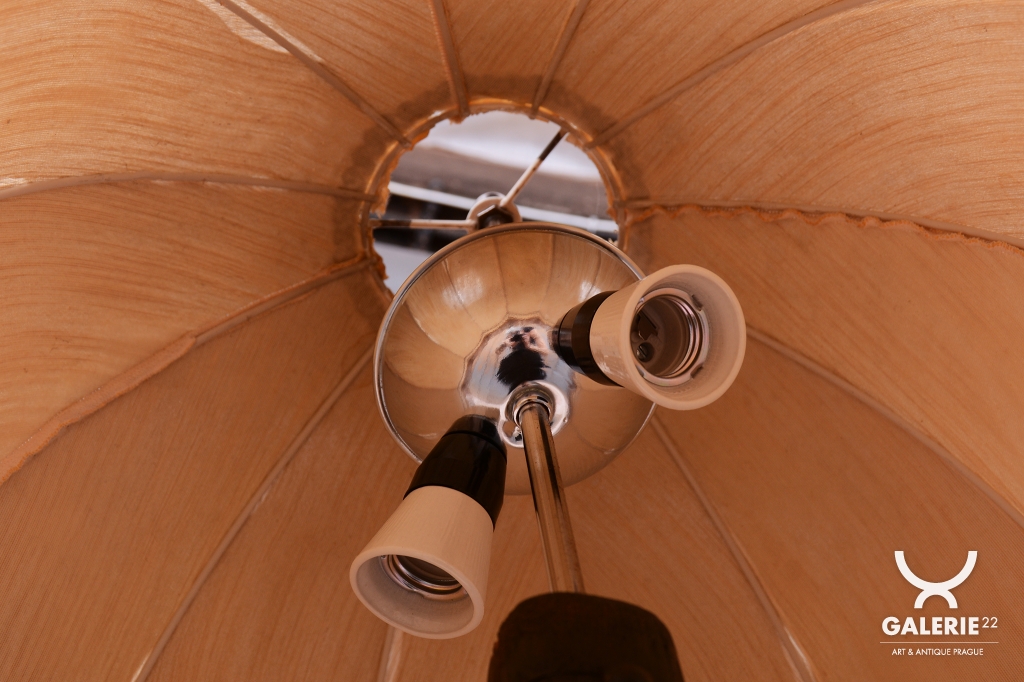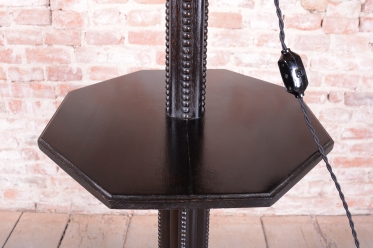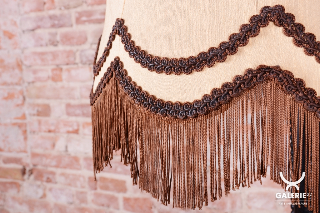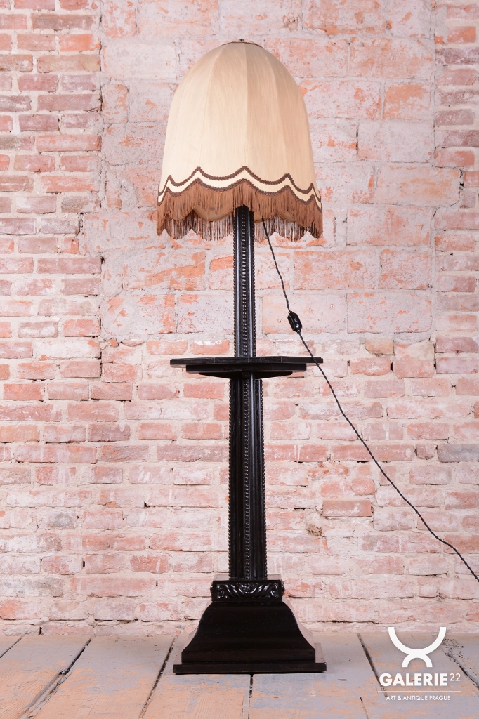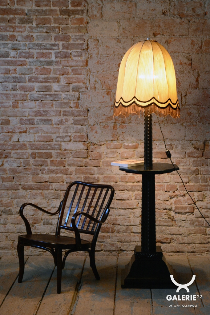 Tato elegantní podlahová lampa je vynikajícím příkladem stylu Art Deco z Československa 20. let 20. století. Konstrukce je vyrobena z kombinace kvalitního bukového a dubového dřeva. Dominantu tvoří původní textilní stínidlo, které bylo odborně vyčištěno a zachovává si svůj historický charakter.