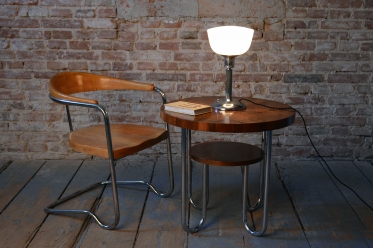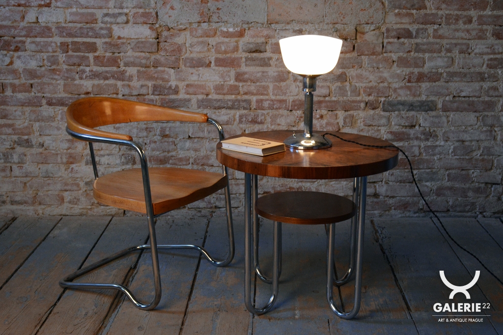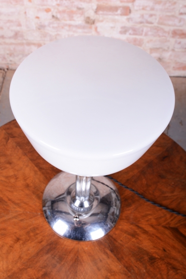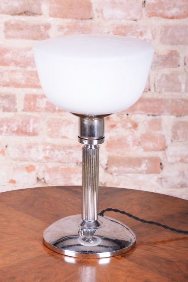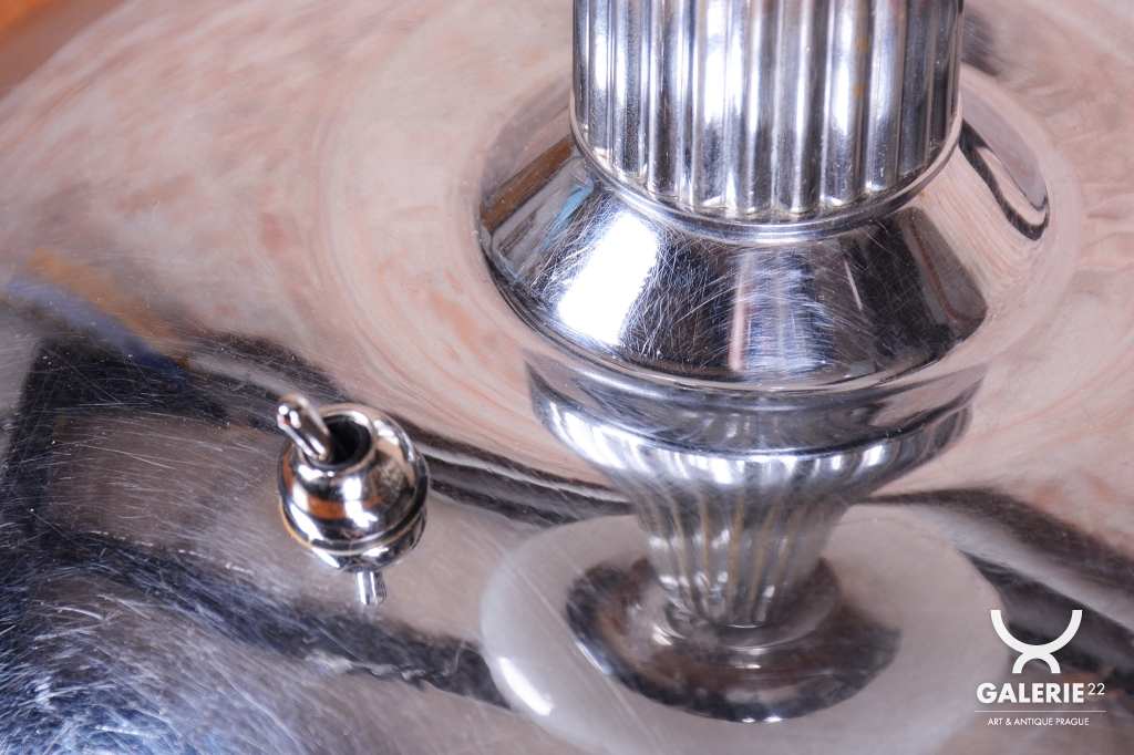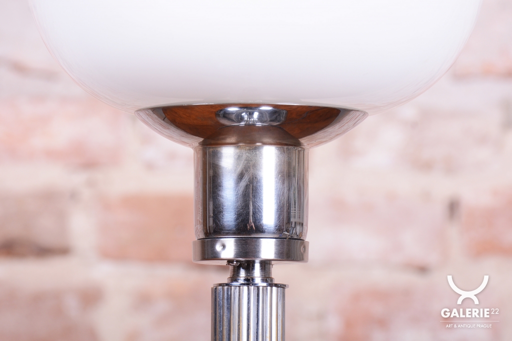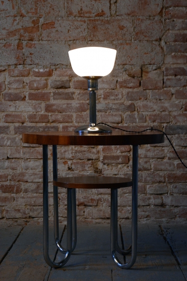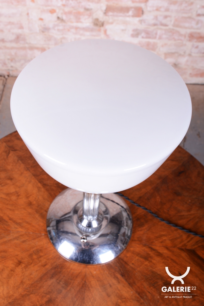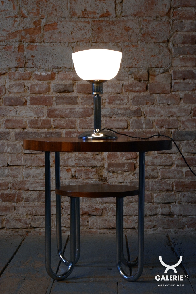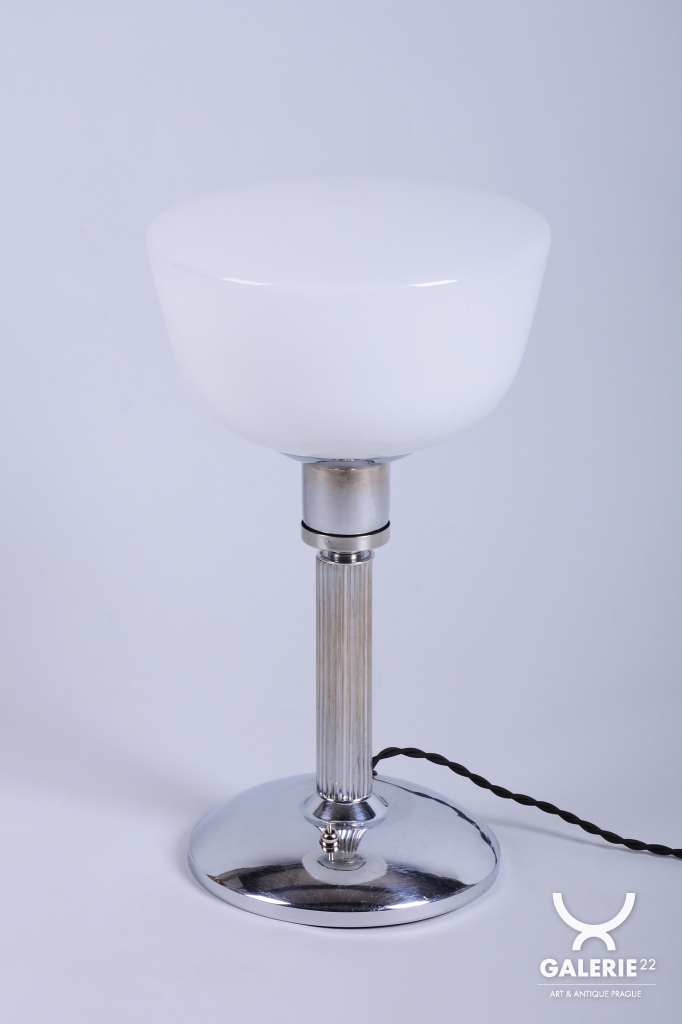 Tato elegantní stolní lampa je klasickým představitelem stylu Bauhaus a byla vyrobena v Československu. Pochází z první poloviny 20. století.