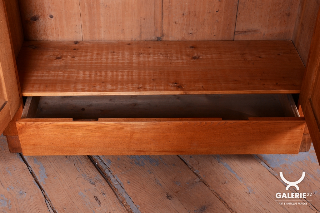 Tento kus nábytku se vyznačuje mimořádně robustní a stabilní konstrukcí, která je typická pro kvalitní řemeslnou výrobu počátku devatenáctého století. Vnitřní prostor nabízí velkorysý úložný objem, díky čemuž je skříň nejen estetickým solitérním prvkem, ale i plně funkčním doplňkem moderního či historického interiéru. Svým provedením reprezentuje stabilitu a eleganci tehdejšího měšťanského bydlení.