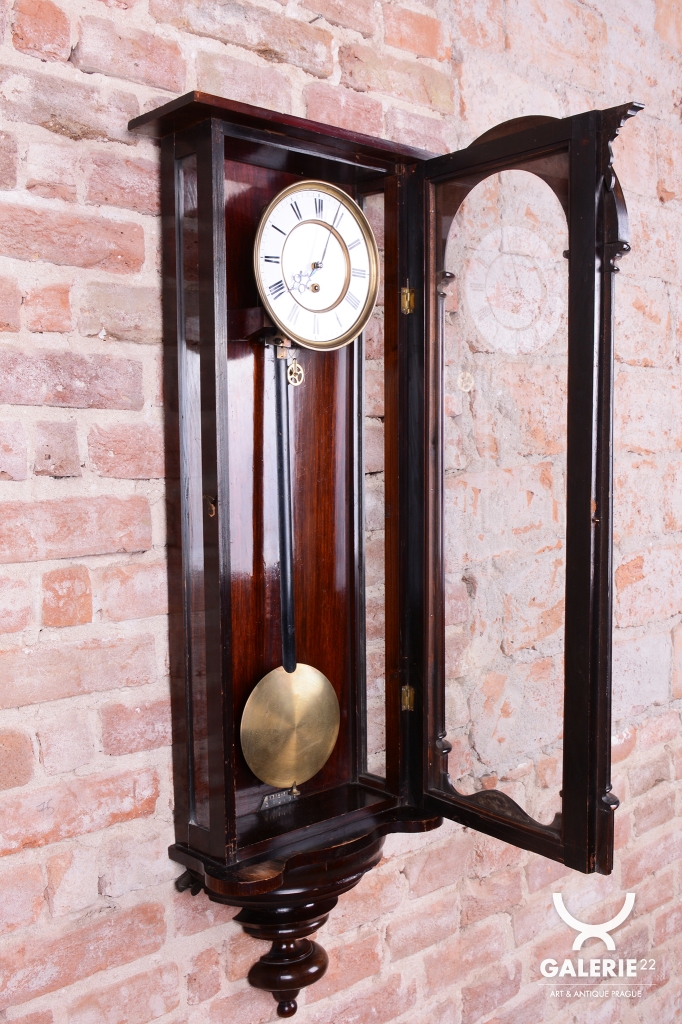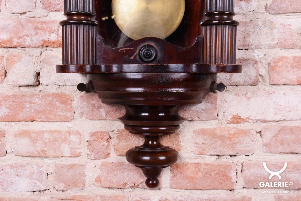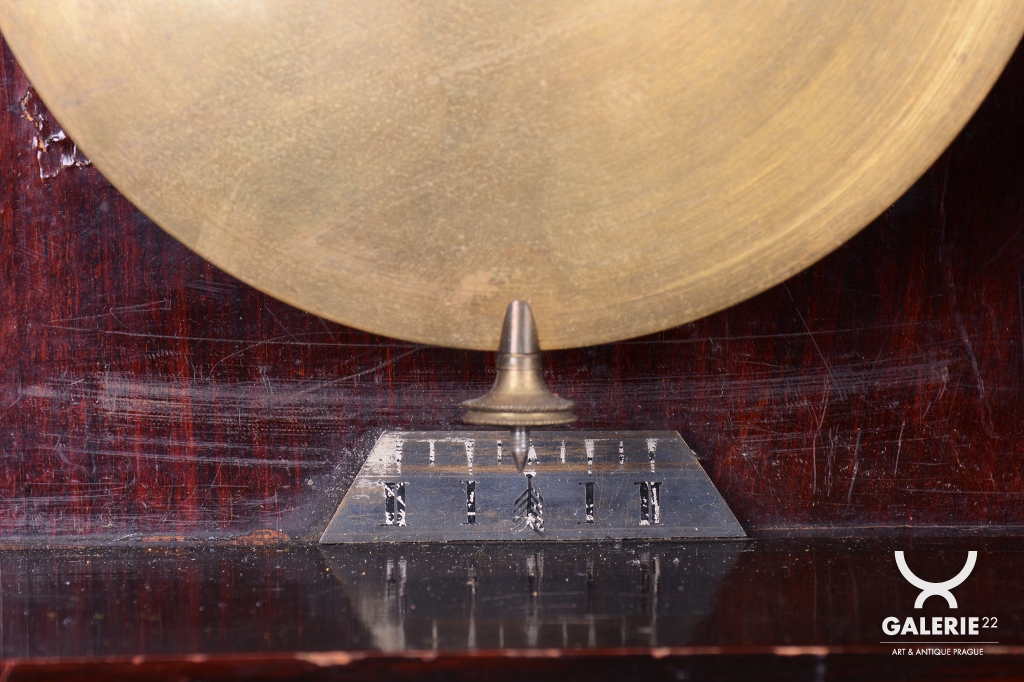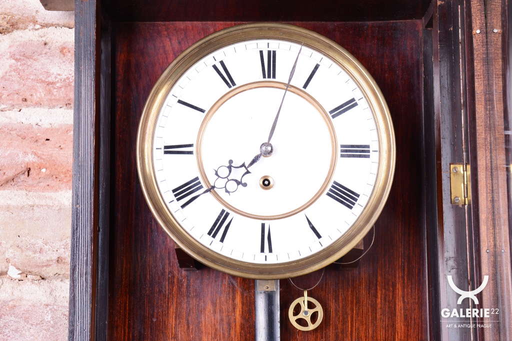 Týdenní stroj - tichý chod bez odbíjení Pozdní Biedermeier Jedno-závažové hodiny Ciferník smalt Mosazný rámeček a kyvadlo