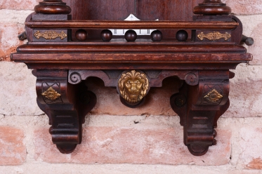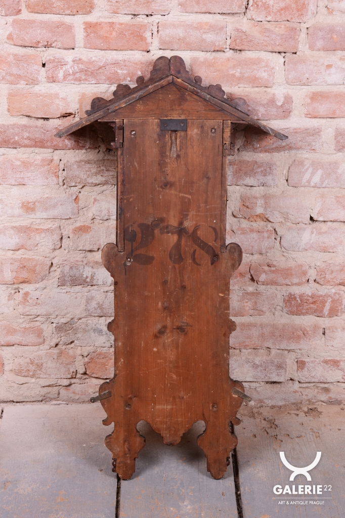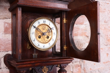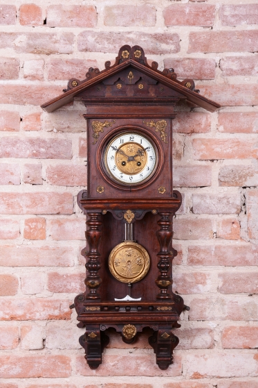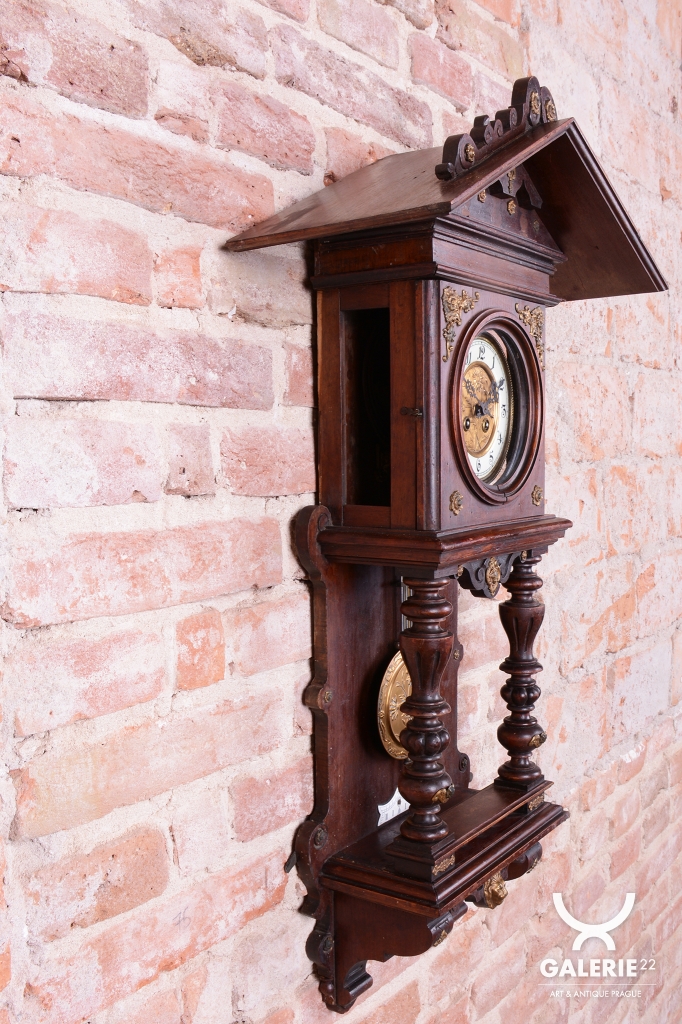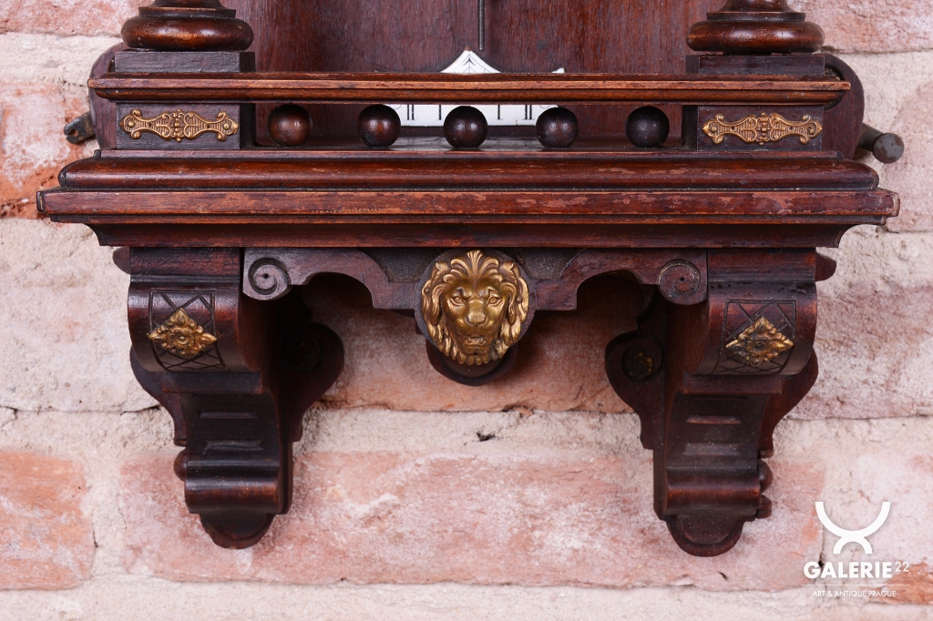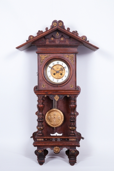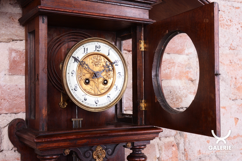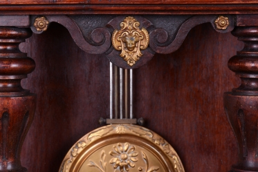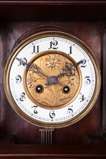 Ozdobně tlačené kyvadlo a ciferník v kombinaci se smaltem a cizelované ozdoby vše mosaz