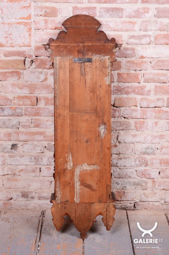 Bohatě vyřezávané tělo hodin, včetně koruny.