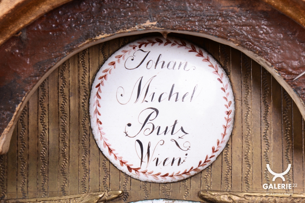 Johann Michael Butz byl uznávaný hodinář, který působil ve Vídni na přelomu 18. a 19. století. Mistrem se stal již v roce 1794. Patřil k elitě vídeňského hodinářství v období, kdy se styl lámal mezi barokem/klasicismem a nastupujícím empírem. Butz byl známý výrobou velmi složitých strojů. Jeho jméno na ciferníku znamená, že jde o autentický vídeňský originál z nejlepší éry rakouského hodinářství.