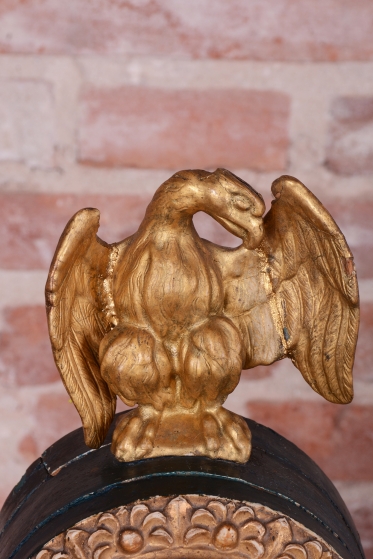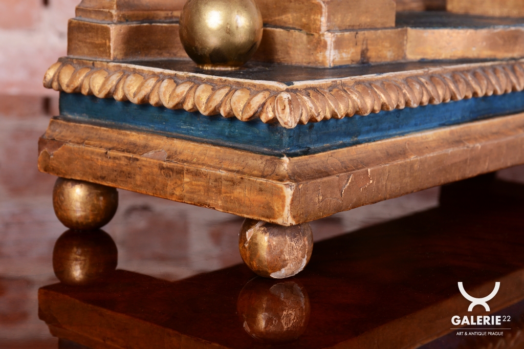 Polychromovaná skříňka a zdobení, zlacené plátkovým zlatem.