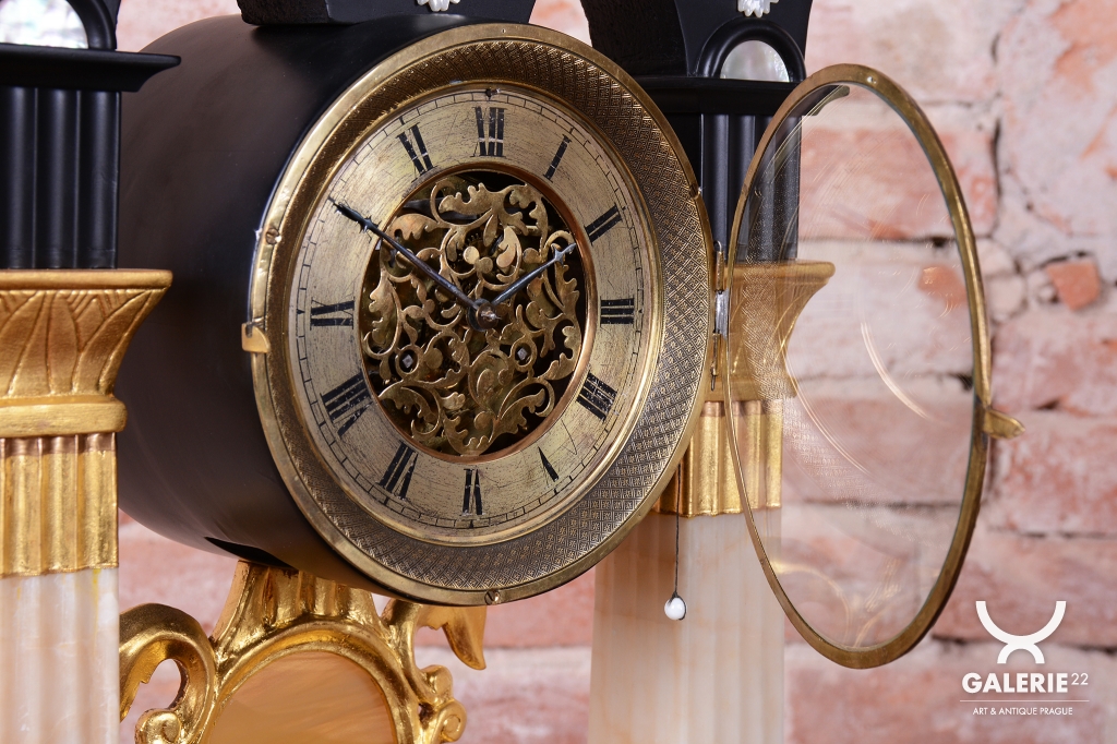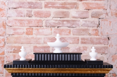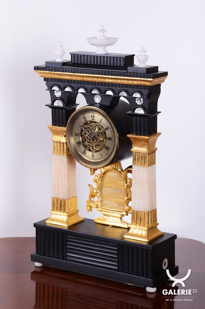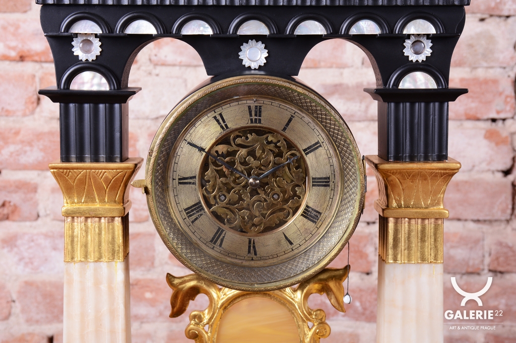 Sloupky a hlavní ozdoba a ozdoby na vrchní římse jsou z Alabastru. Zvláštnost je použití 3 různých barev