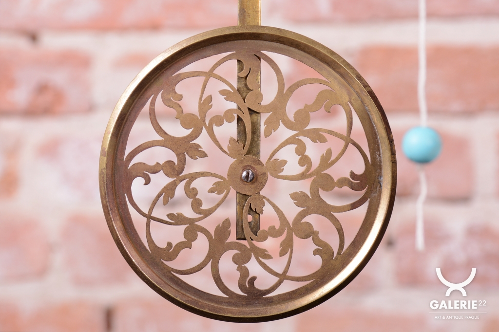 Cizelovaný mosazný ciferník, věnec a kyvadlo.