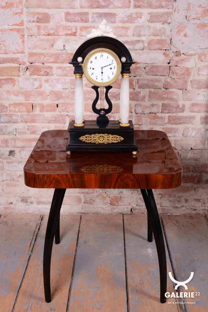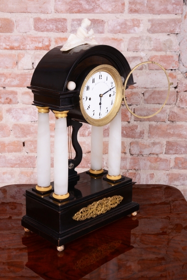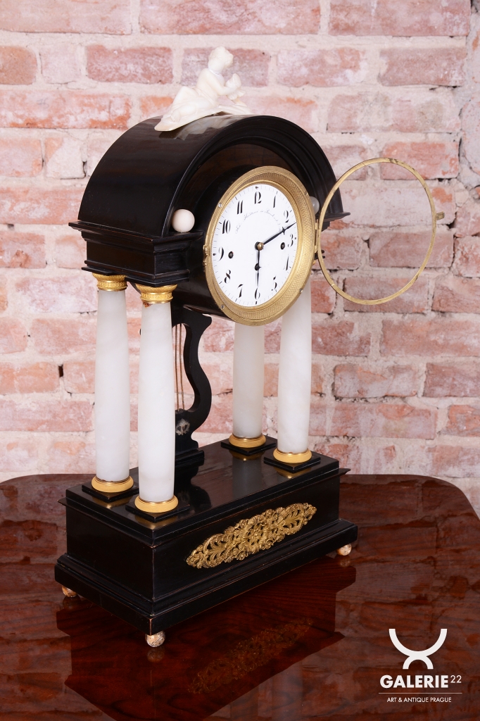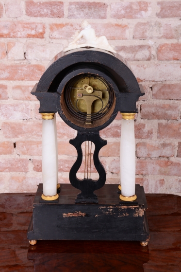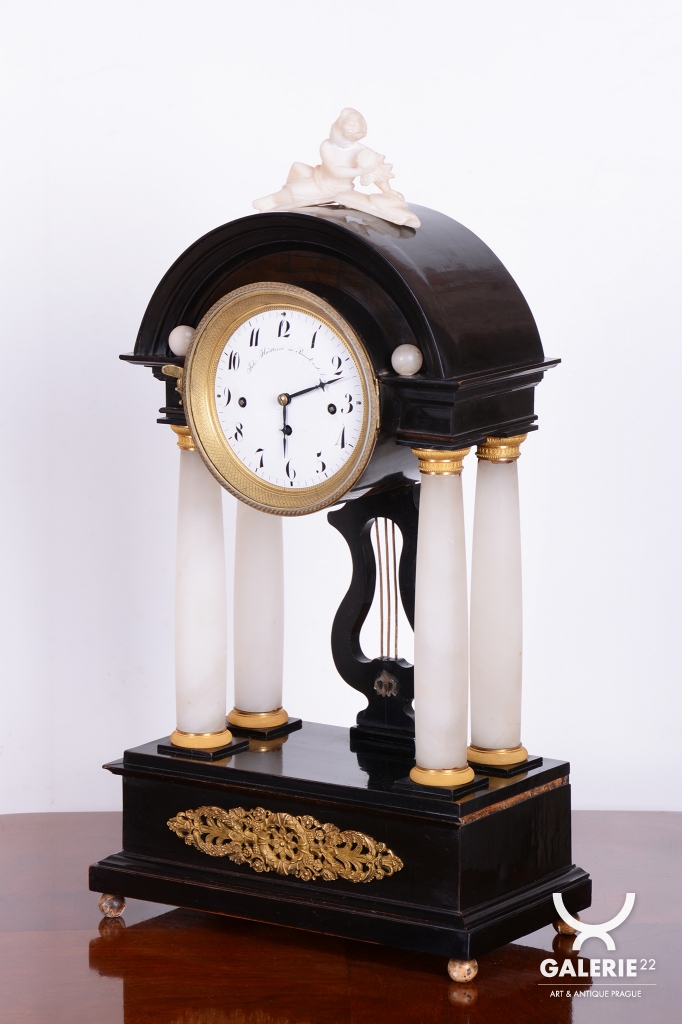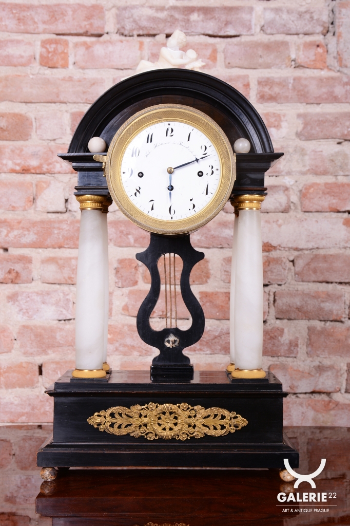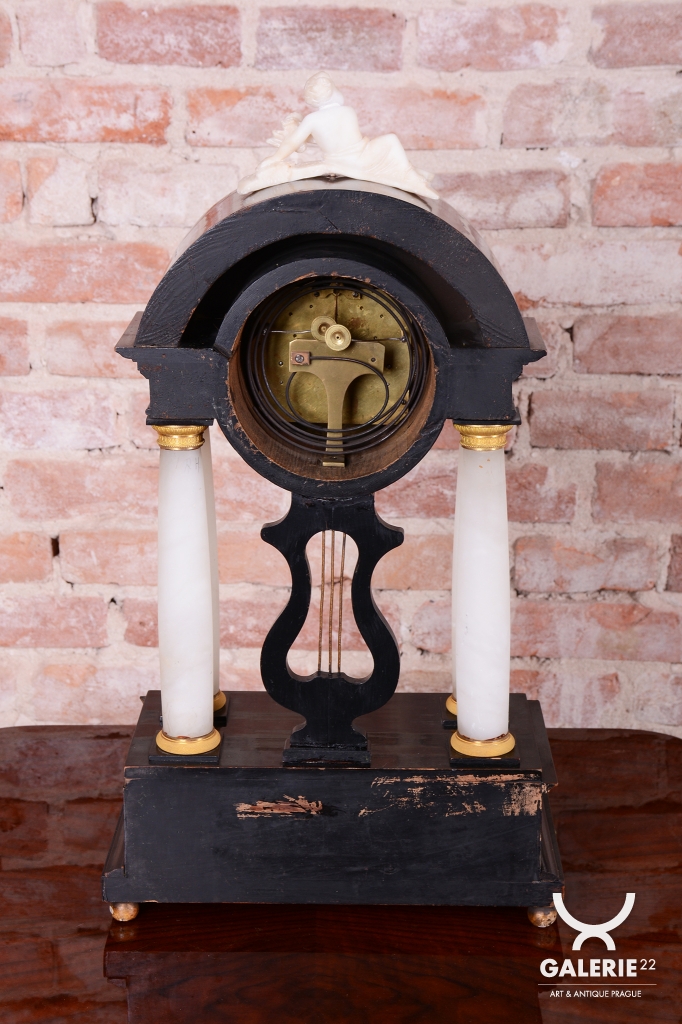 Ležící postava a lyra je typickými antickými vzory pro styl empír.