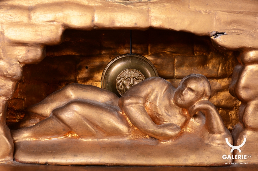 Polychromovaná skříňka zlacená plátkovým zlatem.