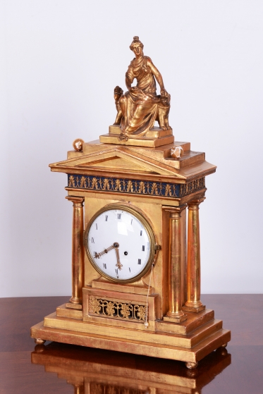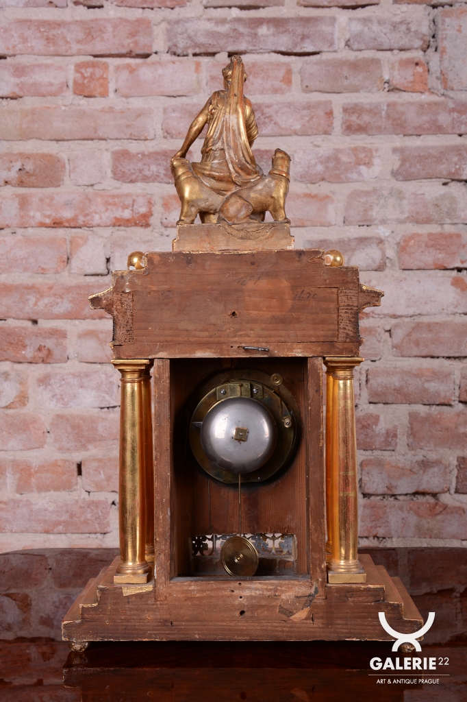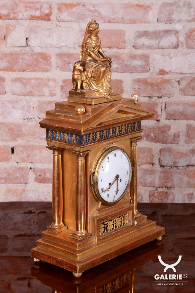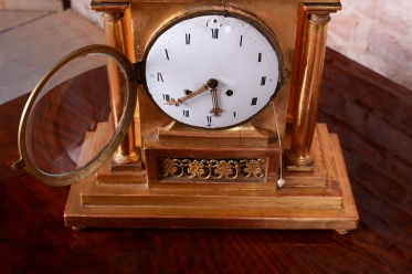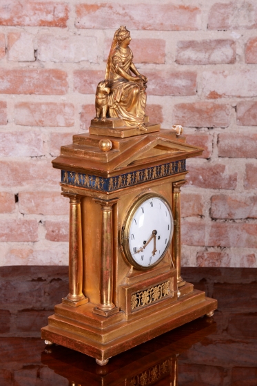 Ciferník smalt, zasazený v mosazném rámečku.