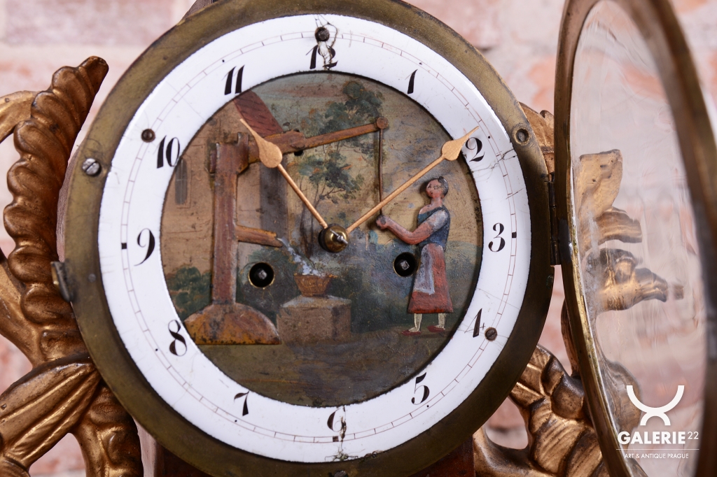 Malá mechanická figurka je umístěna v tomto případě v ciferníku. K ní připojené táhlo pumpy které je nepřetržitě v pohybu. Jeho účelem je především vizuálně fascinovat diváka a zdůraznit neustálý a magický chod času, který je uváděn do pohybu právě tímto mechanismem.