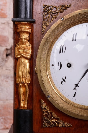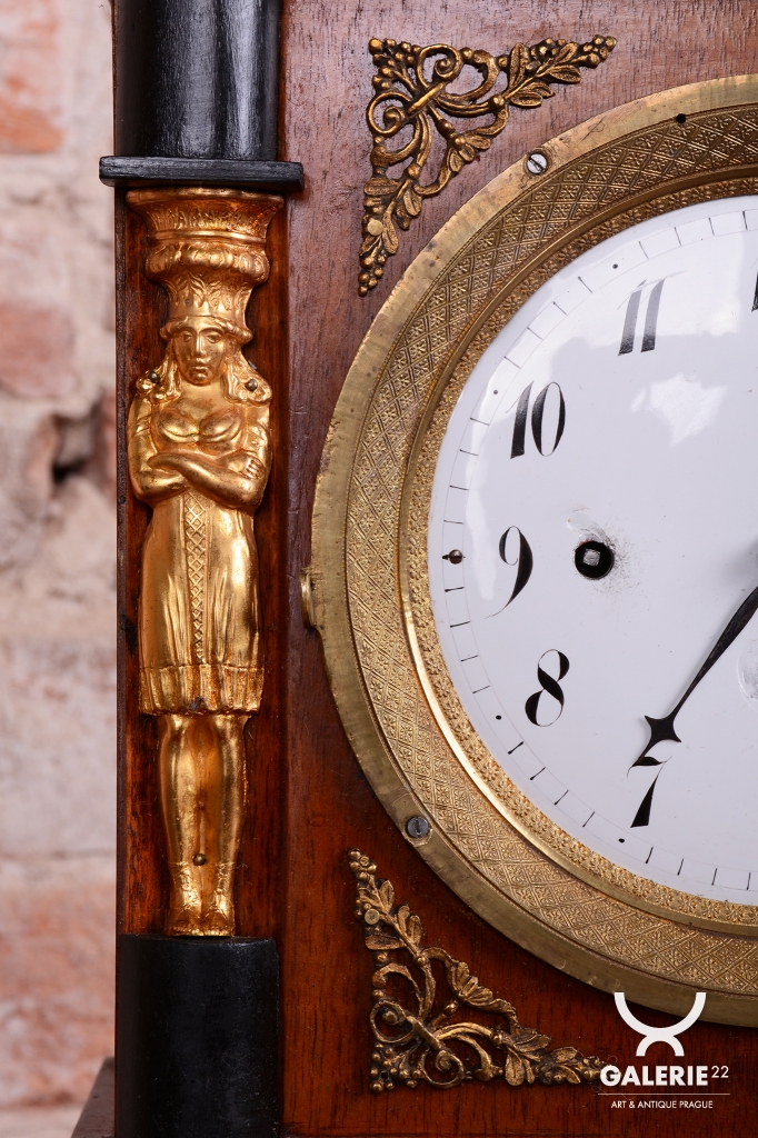 Karyatida - hodinová skříň není podepřena obyčejnými sloupy, ale sochami ženských postav.