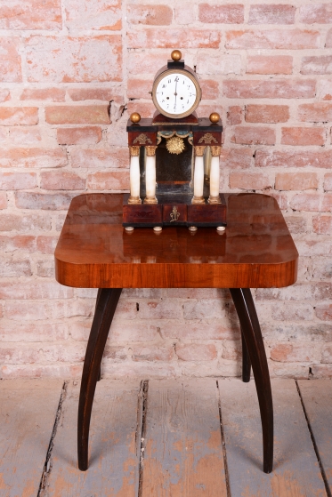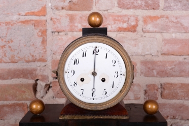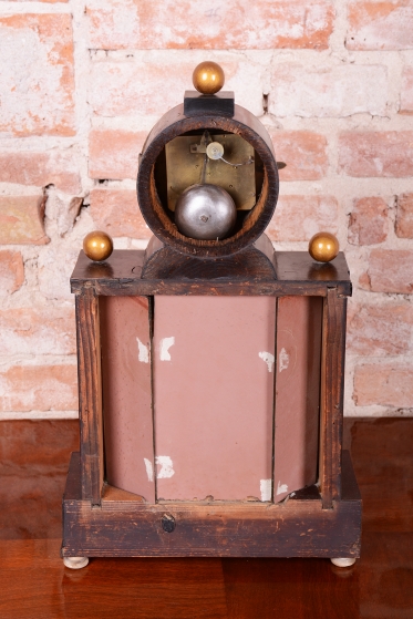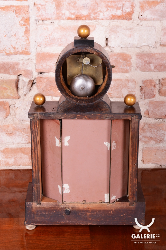 Cizelované mosazné ozdoby, kyvadlo a rámeček.
