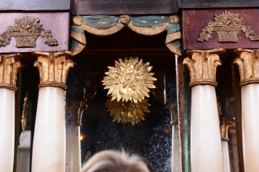 Korintské hlavice a opona - polychrom - zlacené plátkovým zlatem.