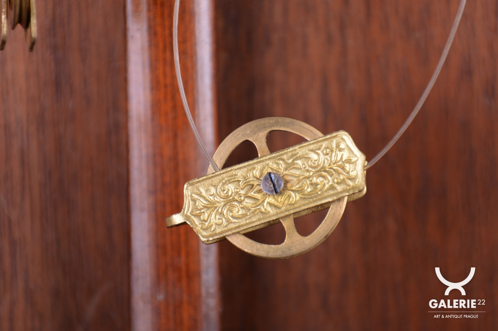Gravírovaný ciferník, mosaz v kombinaci se smaltem.