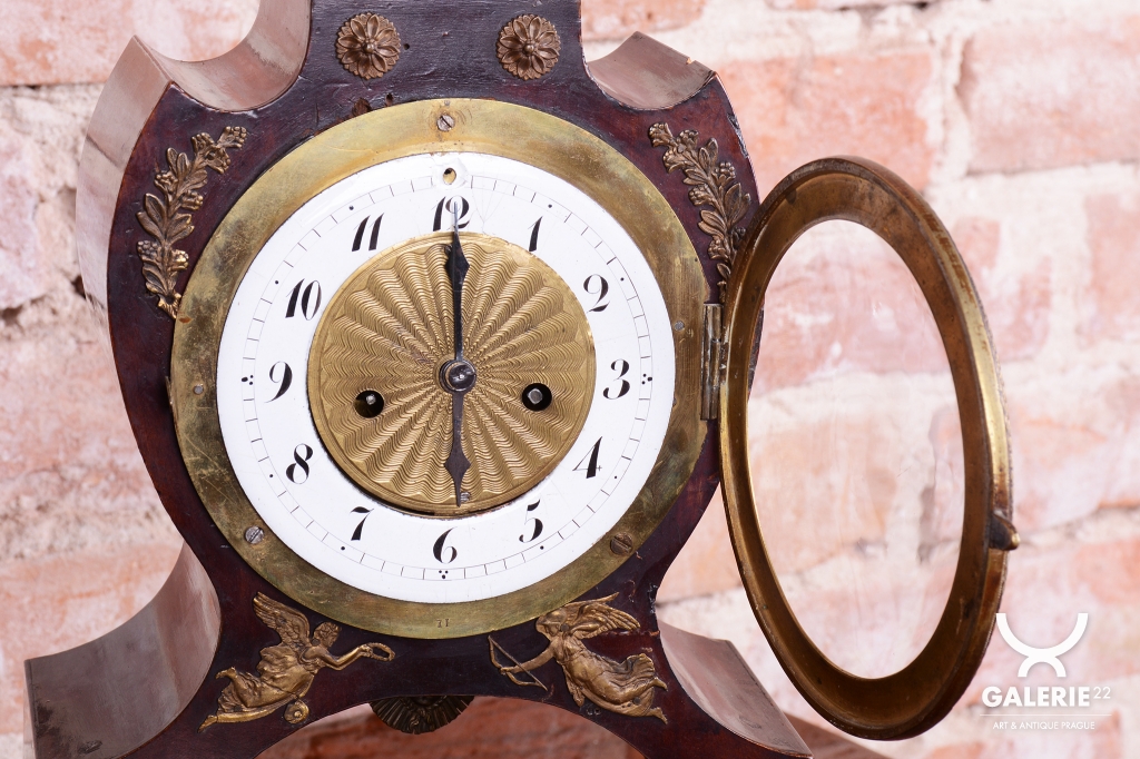Rámeček a cizelovaný ciferník - mosaz v kombinaci s původním smaltem.