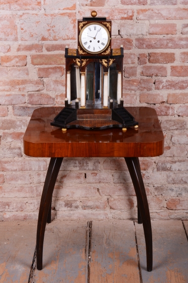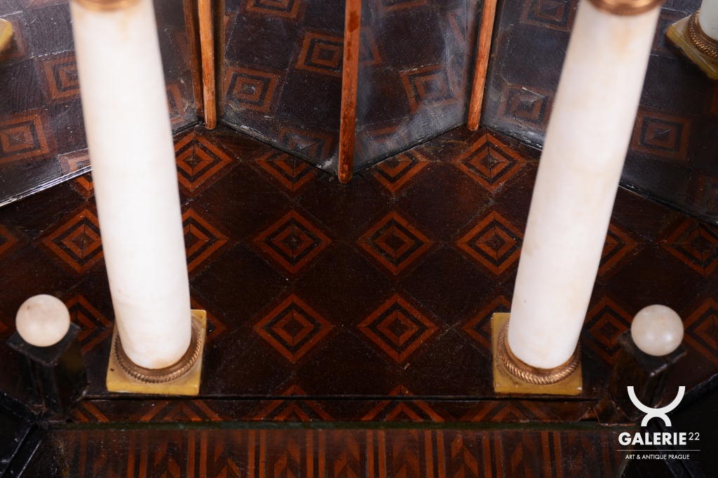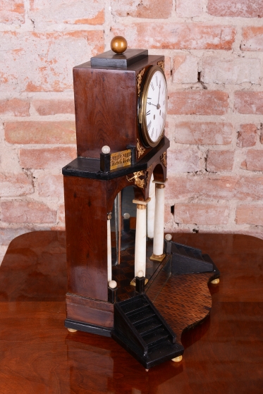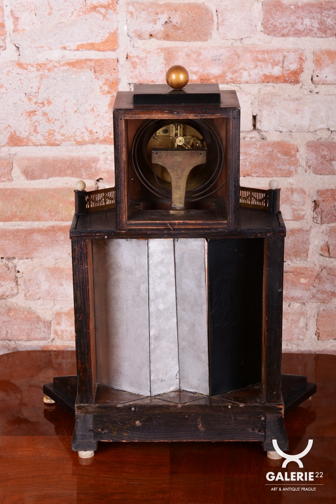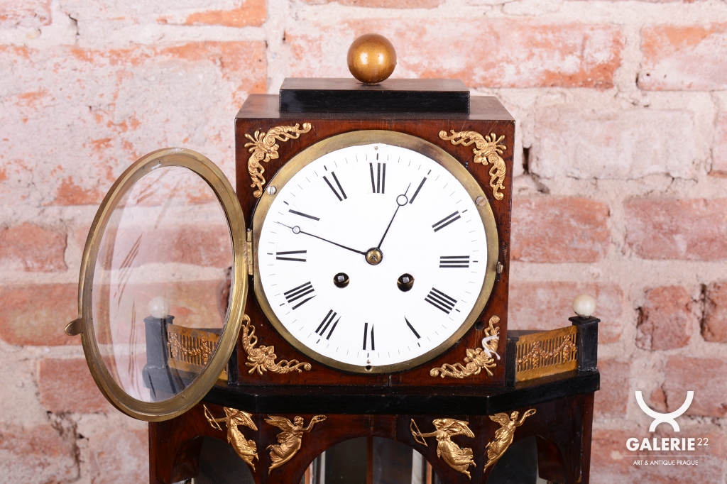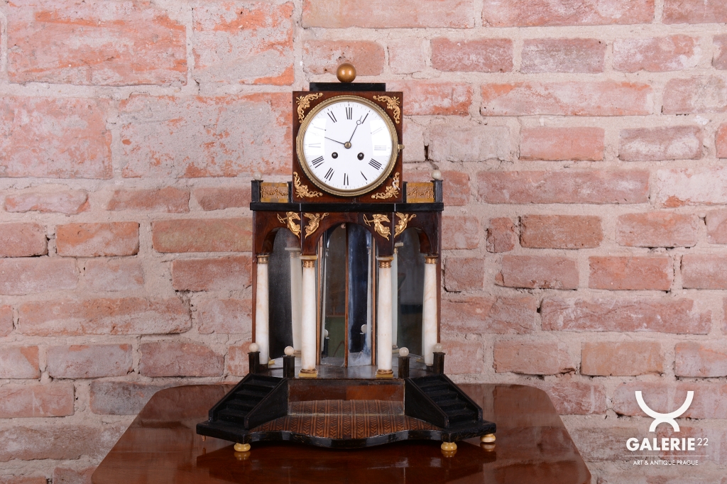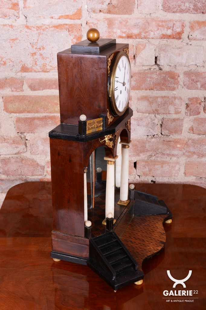 Architektonická symbolika „Schodiště“: V empíru byly tyto hodiny koncipovány jako miniaturní antické chrámy (portály).