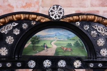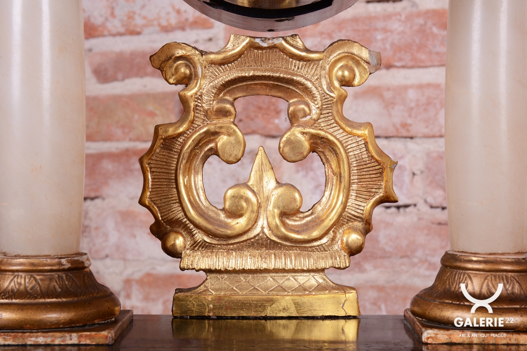 Ozdoby - perleť a polychrom - korintské hlavice a ostatní zlaté prvky - vše zlacené plátkovým zlatem.