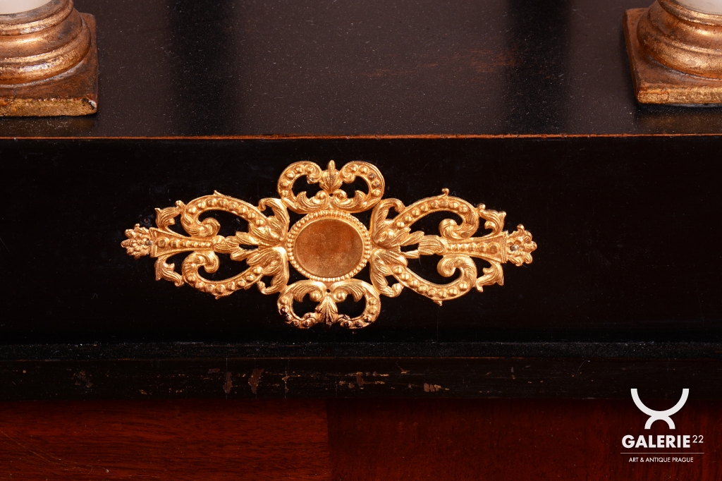 Ozdoby - polychrom zlacené plátkovým zlatem a cizelovaná mosaz.