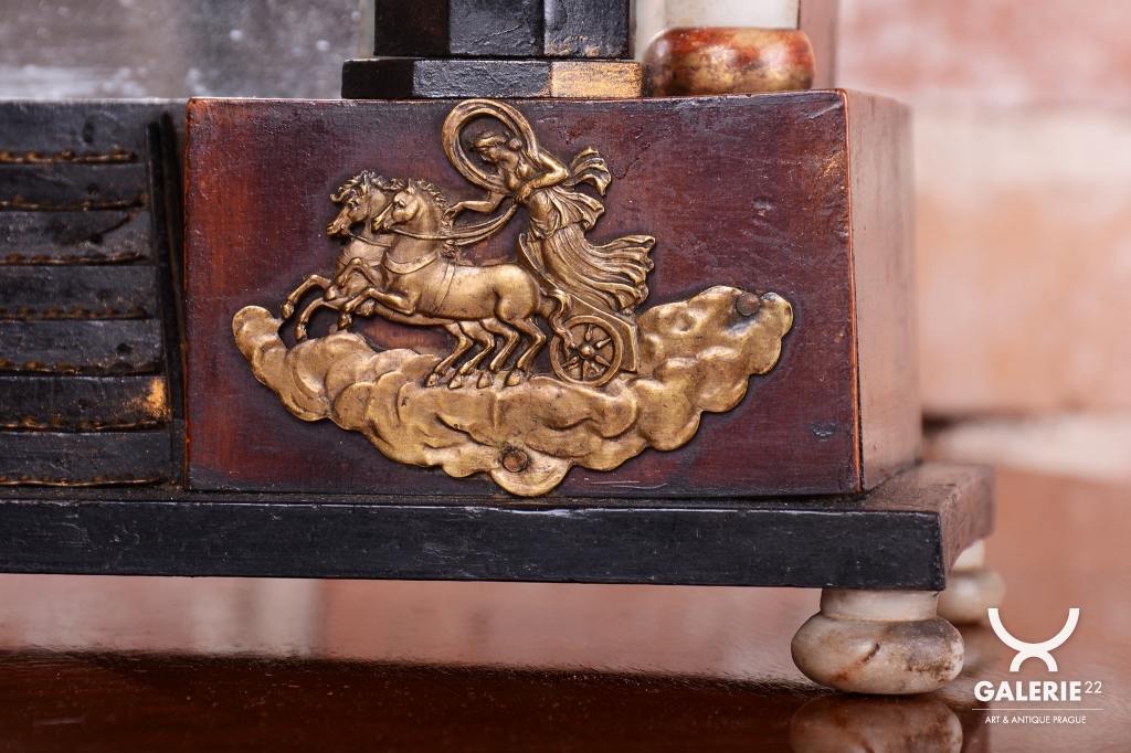 Architektonická symbolika „Schodiště“: V empíru byly tyto hodiny koncipovány jako miniaturní antické chrámy (portály).