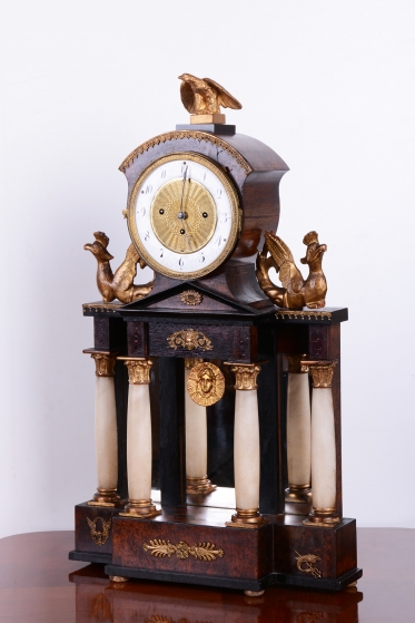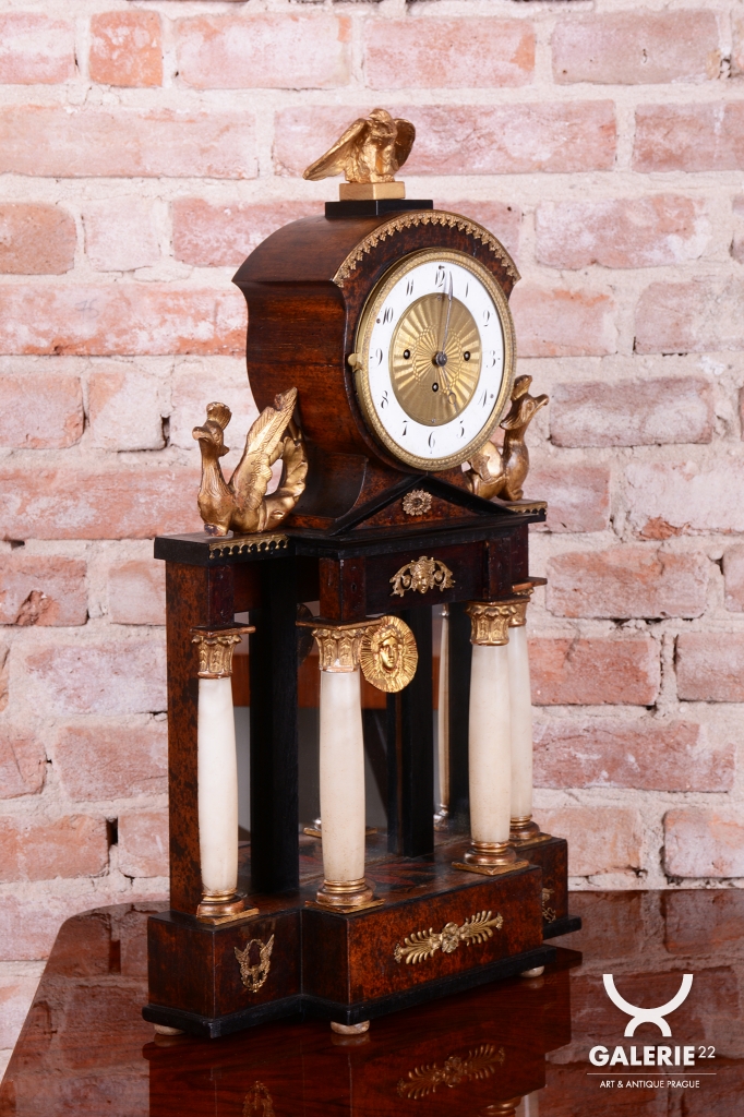 Cizelované kyvadlo a ciferník v kombinaci se smaltem.