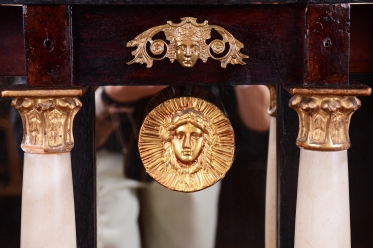 Hlavní antické apliky - polychrom - zlacené plátkovým zlatem.