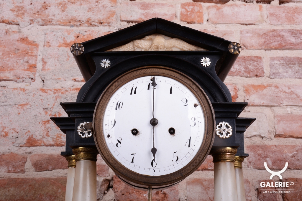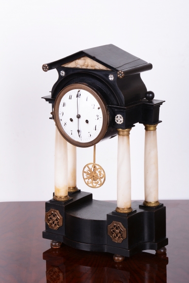 Cizelovaný věnec, patky sloupů, kyvadlo a ozdoby - mosaz.