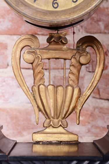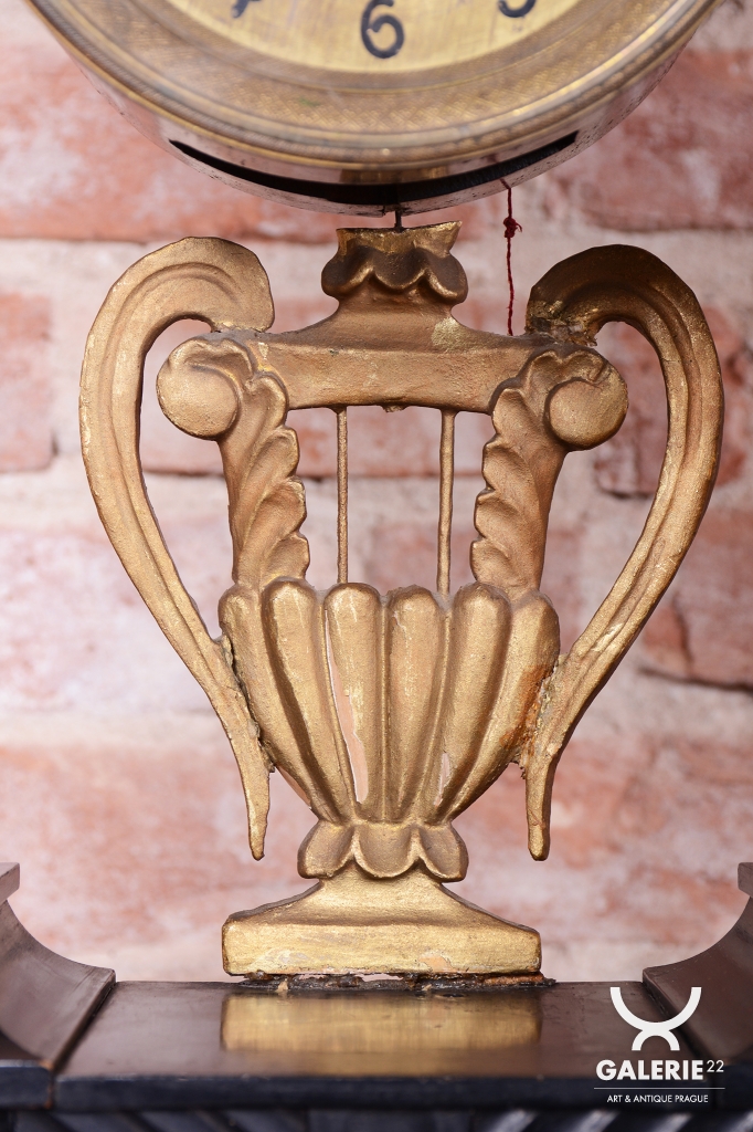 Lyra zavěšená pod ciferníkem a zdobení v horní části - polychrom - zlacené plátkovým zlatem.