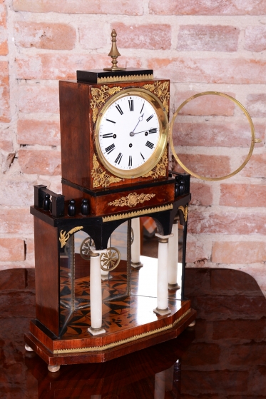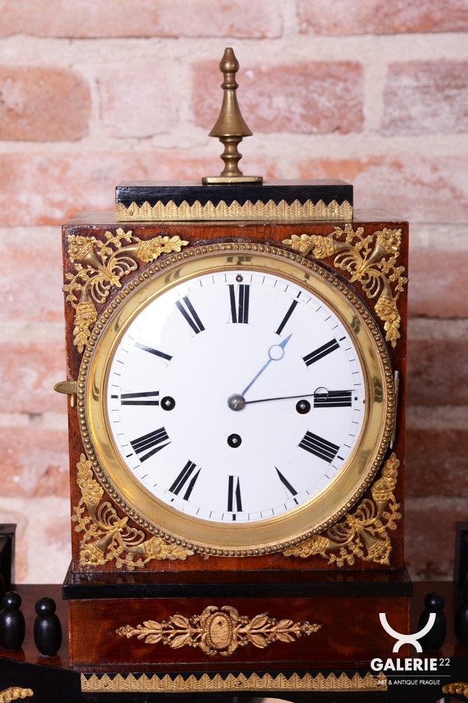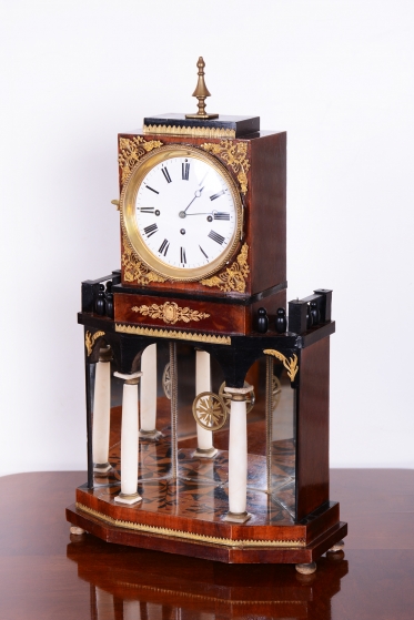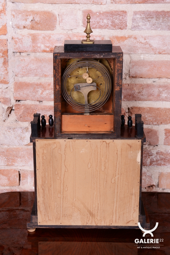 Architektonická symbolika: V empíru byly tyto hodiny koncipovány jako miniaturní antické chrámy (portály).
