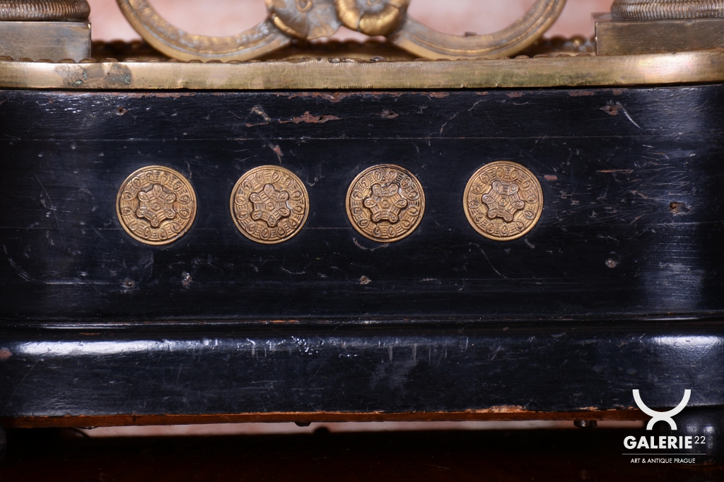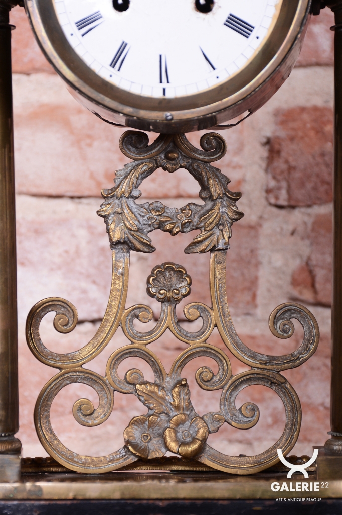 Celé tělo hodin je bohatě zdobeno - mosaz.