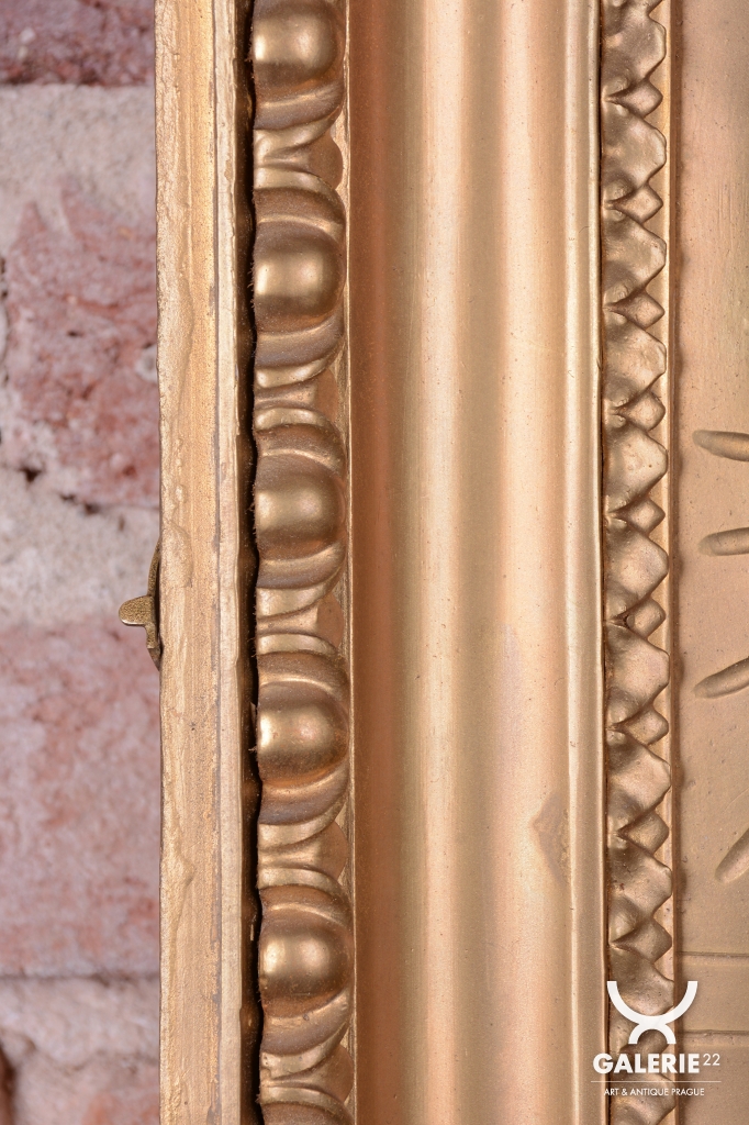 Rámeček ciferníku, cizelovaná mosaz. Ciferník smalt.