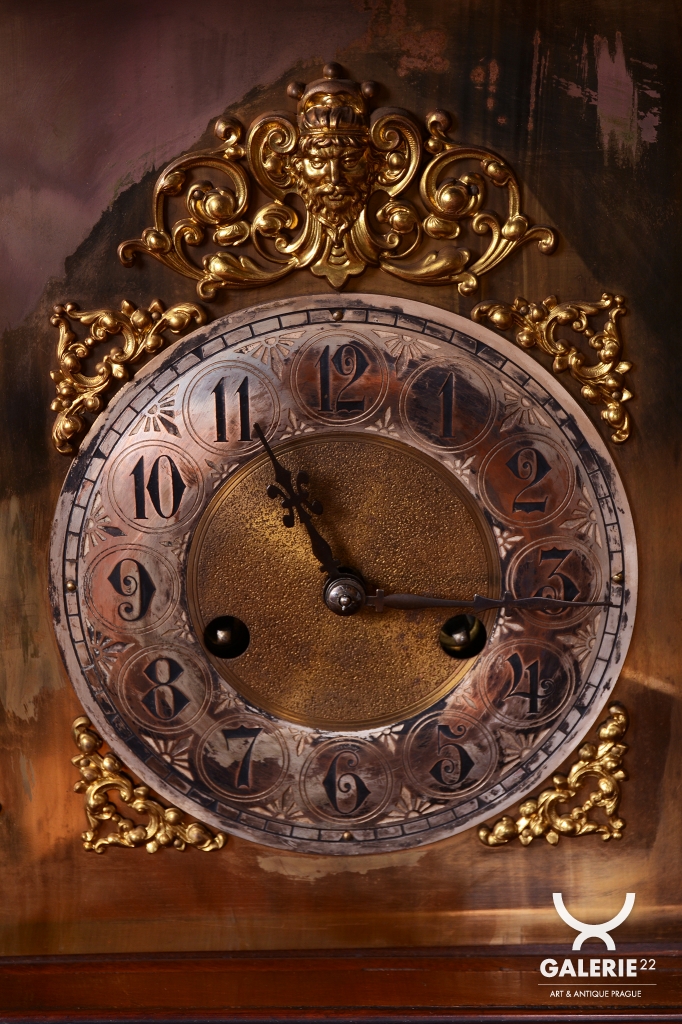 Ozdobně tlačený ciferník - postříbřený a cizelované ozdoby - mosaz.