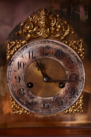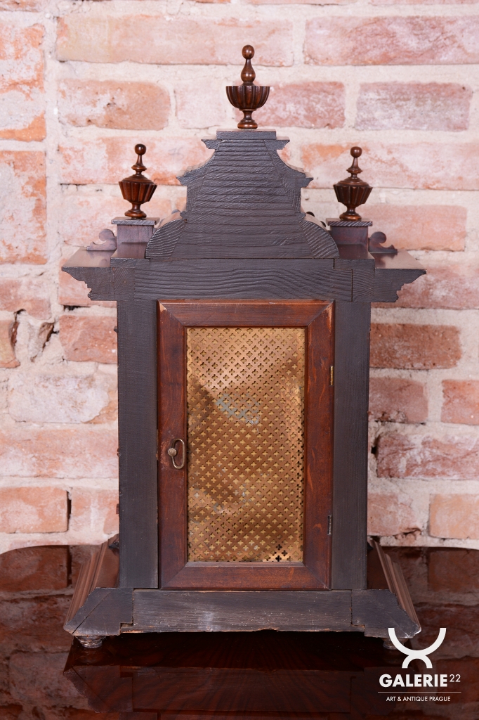 Bohatě vyřezávané tělo hodin, včetně koruny.