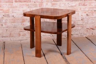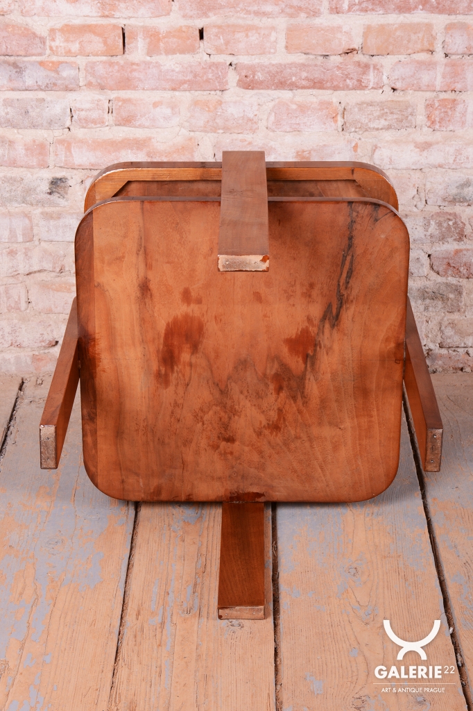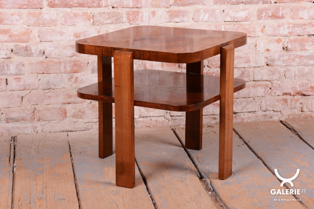 Tento stolek je elegantním zástupcem československého nábytkového designu 30. let 20. století. V období vrcholného Art Deca se kladl důraz na kvalitu materiálů a čistotu forem, což tento kus dokonale naplňuje. Díky svým kompaktním rozměrům a nadčasovému vzhledu najde uplatnění jako odkládací, konferenční nebo květinový stolek v moderním i dobovém interiéru.