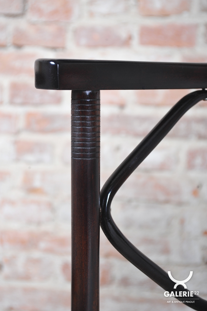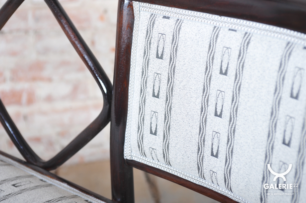 Souprava prošla precizním restaurováním, které jí navrátilo její původní noblesu. Konstrukce z mořeného buku vykazuje stabilitu a kvalitu ohýbaného nábytku, jímž byla firma Kohn proslulá. Původní politura dřeva byla citlivě oživena, aby vynikla hluboká barva a hedvábný lesk rámu. Celý set byl nově odborně očalouněn, přičemž výběr textilie koresponduje s historickým významem soupravy a podtrhuje její architektonickou hodnotu. Jde o investiční kus muzeální kvality, který definoval estetiku moderní Vídně.