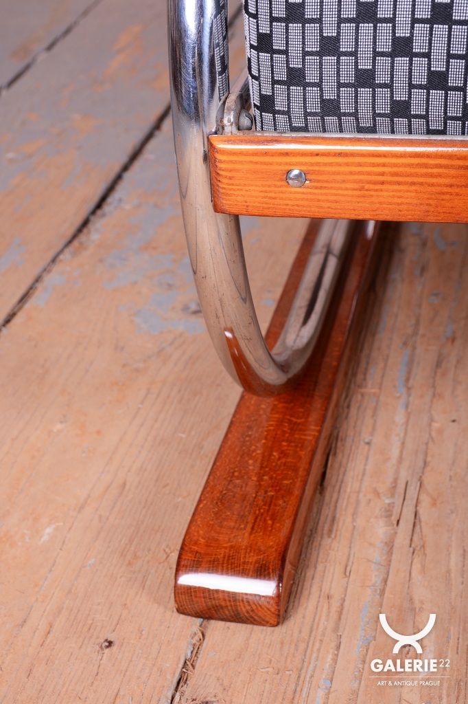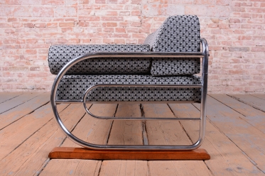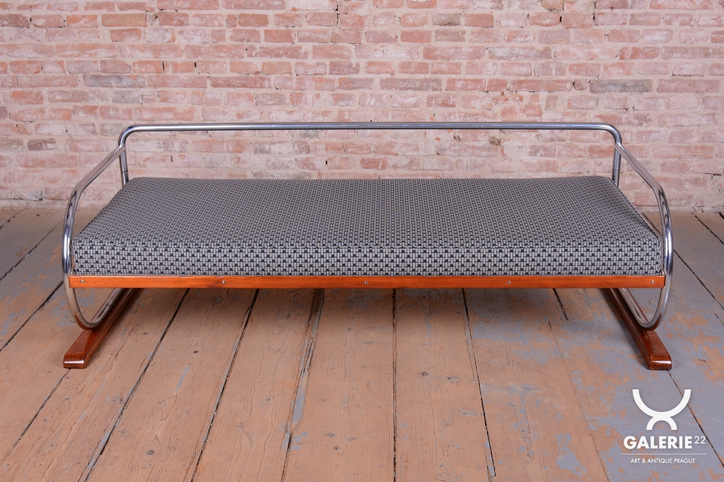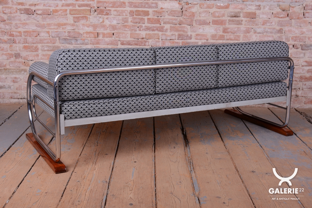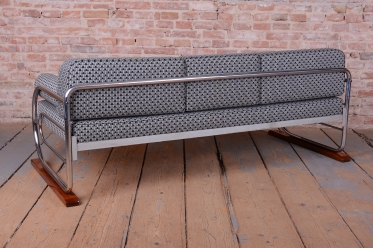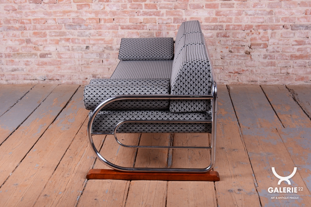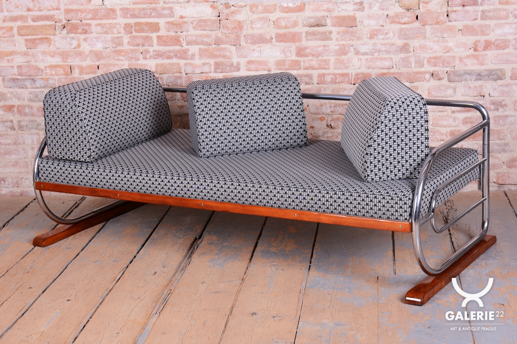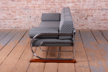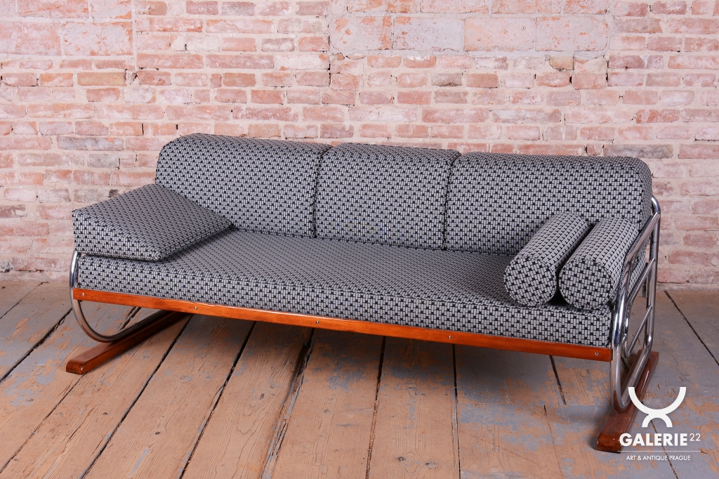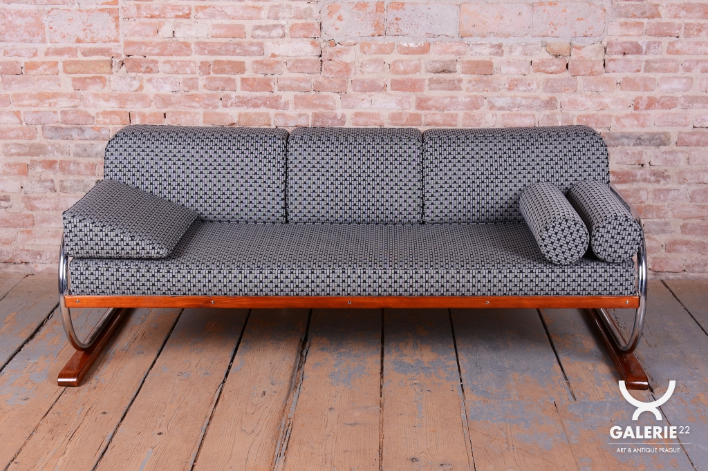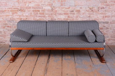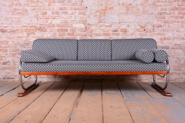 Tato elegantní pohovka ve stylu Bauhaus z 30. let 20. století je výjimečným příkladem československého funkcionalistického designu. Byla vyrobena renomovanými Slezákovými závody a prošla pečlivou renovací, aby získala zpět svou původní krásu.