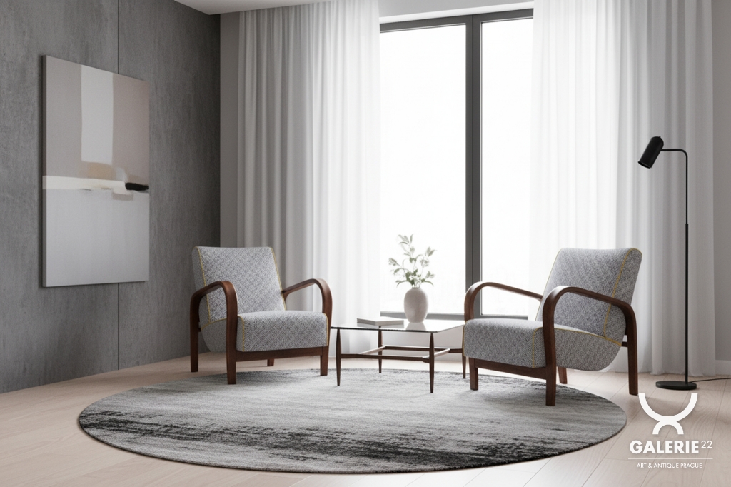 Koželka and Kropáček Tyto křesla navrhla dvojice architektů Koželka - Kropáček ve spolupráci s Jindřichem Halabalou (UP Závody) a inspirovali se jeho legendárními křesly H269.