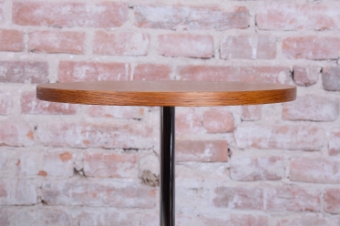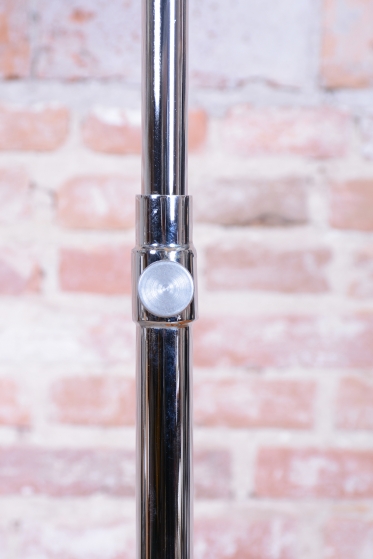 Lampa je zhotovena z trubkové chromované oceli, která byla profesionálně vyčištěna. Její polička a základna jsou ze dřeva s dubovou dýhou, což dodává celku hřejivý a přírodní prvek. Osazena je kulatým stínidlem z mléčného opálového skla o průměru 25 cm, které zajišťuje příjemné a rovnoměrné osvětlení.