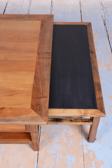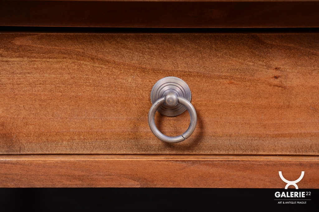 Stůl je zhotoven z třešňového masivu, což mu propůjčuje krásnou, hlubokou barvu a ušlechtilý vzhled. Prošel pečlivou renovací, během níž byla oživená původní politura, která podtrhuje autenticitu a přirozenou krásu dřeva.