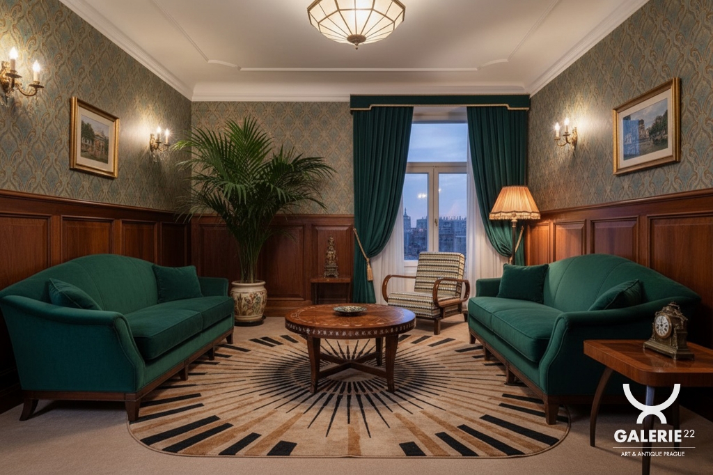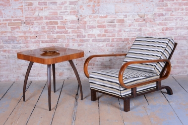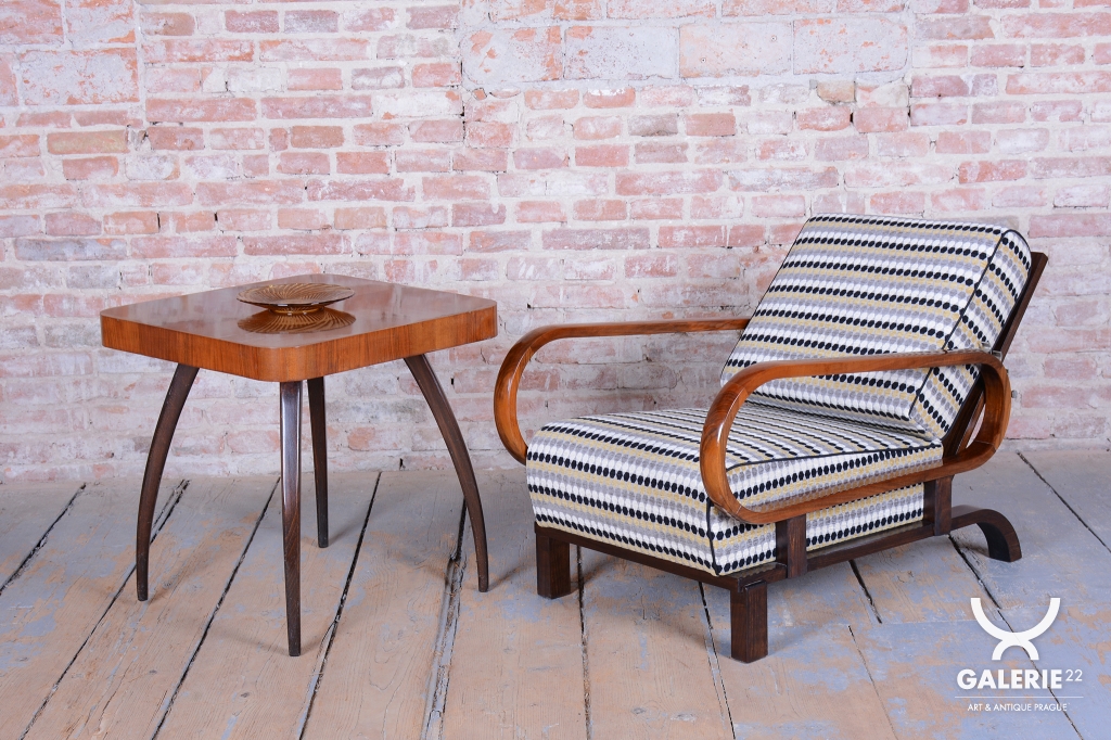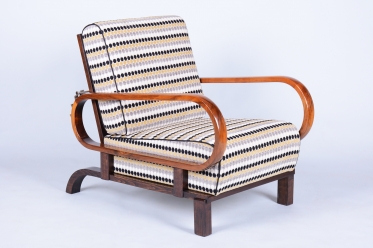 Toto luxusní polohovací křeslo ve stylu Art Deco je ikonickým kusem z počátku 20. století, navržené legendárním designérem Jindřichem Halabalou pro UP Závody v Československu.