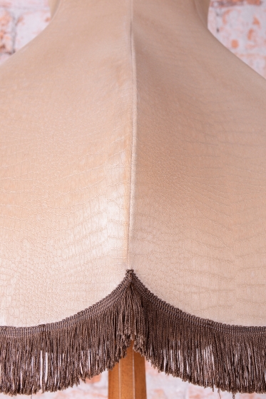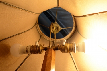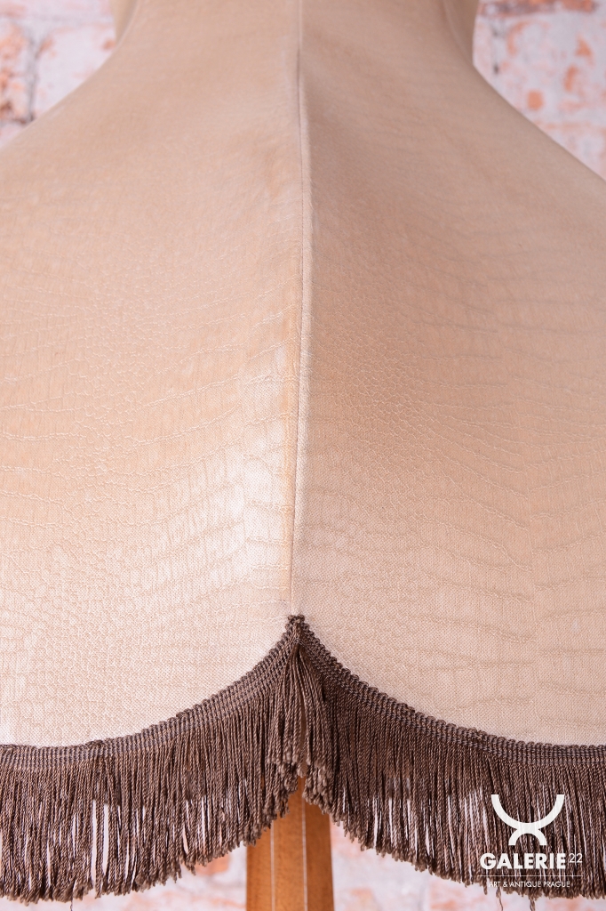 Lampa prošla pečlivou renovací, během níž byla oživená původní politura, která podtrhuje její autenticitu. Je osazena textilním stínidlem, které ladí s celkovou estetikou a zajišťuje příjemné osvětlení. Pro bezpečné a spolehlivé použití byla nově elektrifikována.