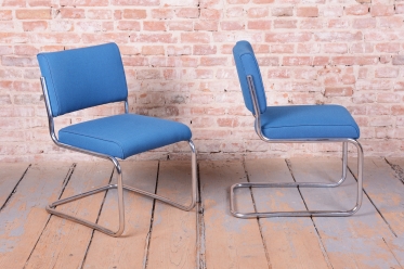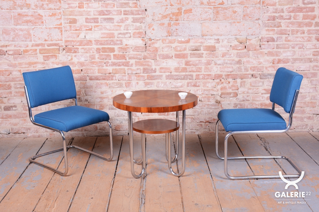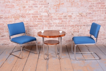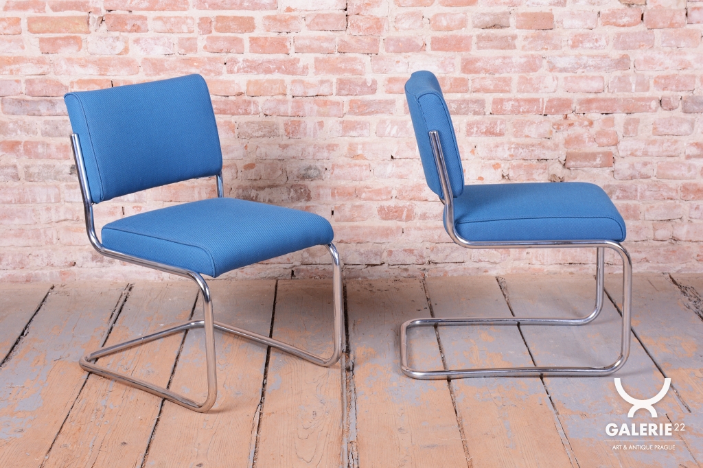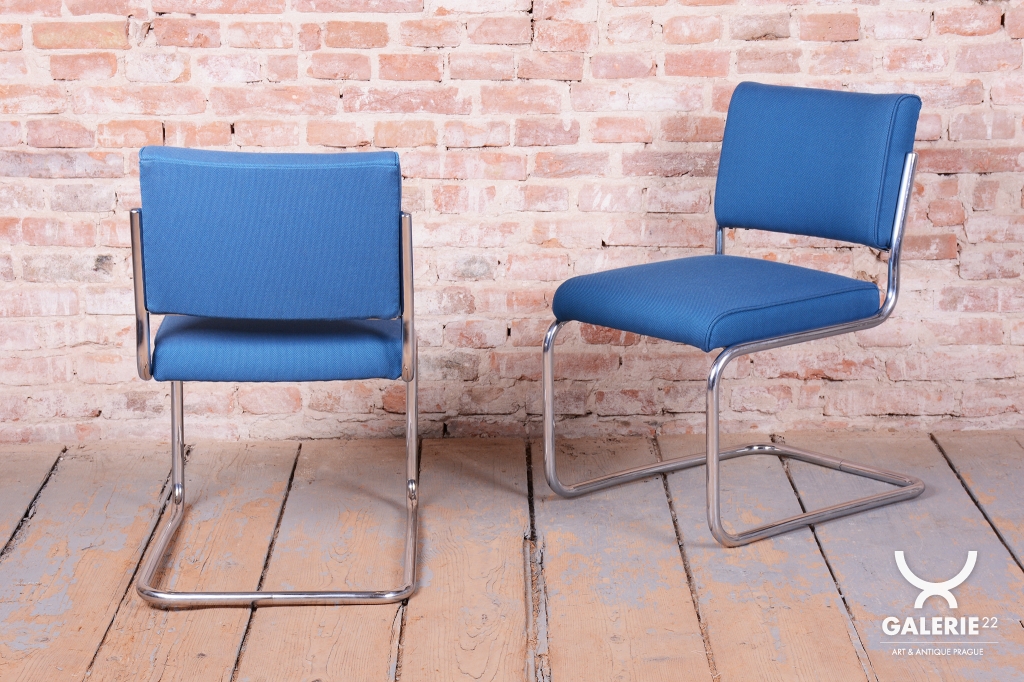 Tento elegantní pár židlí ve stylu Bauhaus pochází z Československa z 30. let 20. století. Židle byly vyrobeny firmou Hynek Gottwald, která je synonymem pro kvalitní řemeslné zpracování a nadčasový funkcionalistický design.