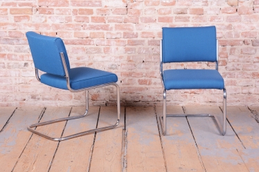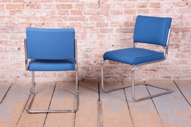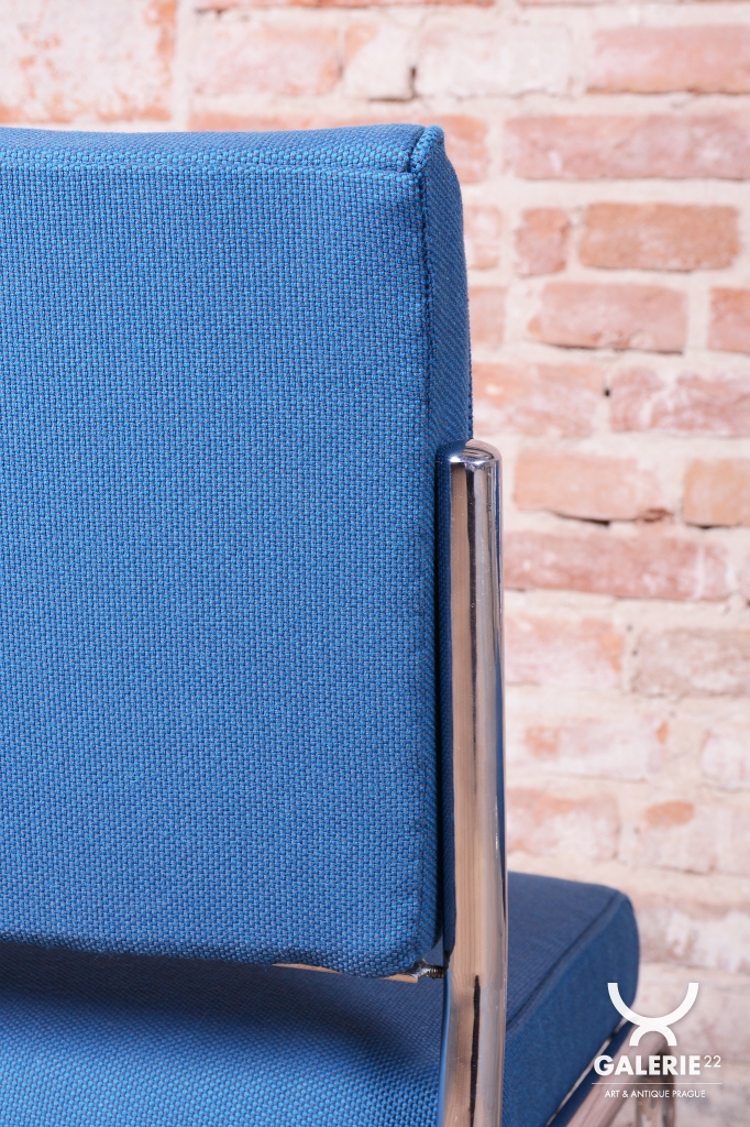 Konstrukce je zhotovena z trubkové chromované oceli, která byla profesionálně vyčištěna, aby získala svůj původní zrcadlový lesk. Pro maximální komfort a autentický vzhled bylo provedeno nové, odborné čalounění dle původní předlohy, které zaručuje nejen krásný vzhled, ale i pohodlí a odolnost. Celý pár byl restaurován a je připraven stát se stylovým a praktickým doplňkem vašeho interiéru.