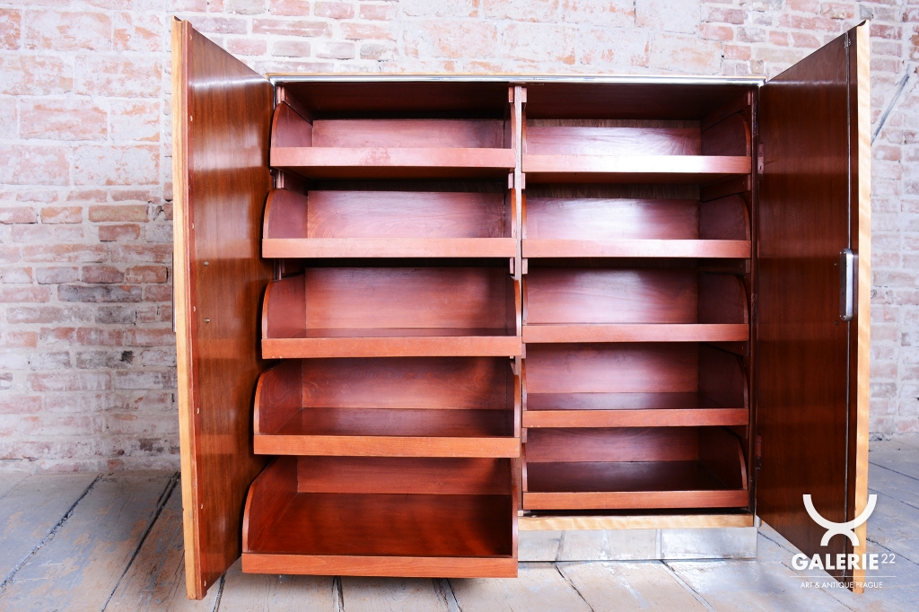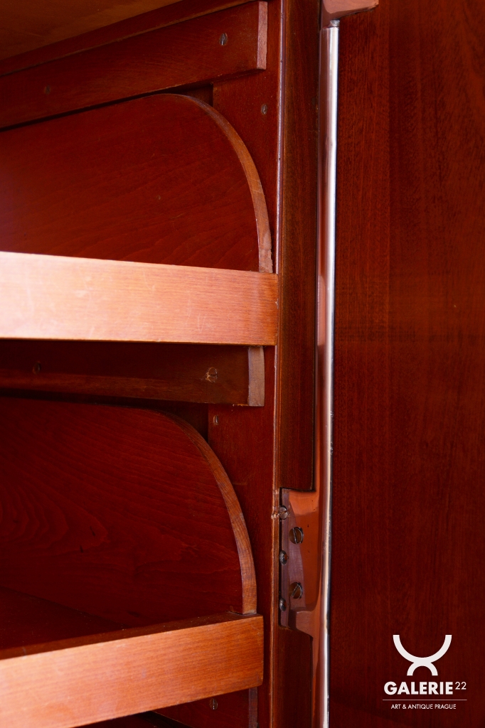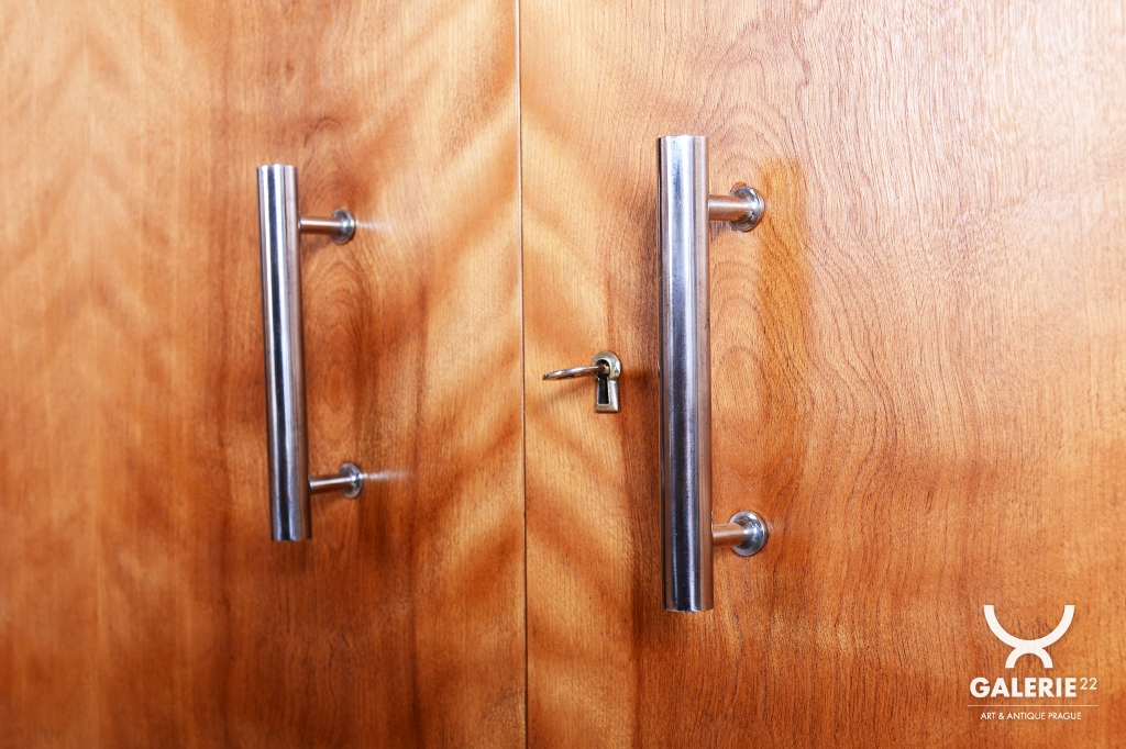 Skříň prošla restaurováním, má oživenou původní polituru a chrom byl profesionálně vyčištěn. Je ideální pro ty, kteří hledají funkční a esteticky vytříbený úložný prostor s vysokou sběratelskou hodnotou a historií Bauhausu.