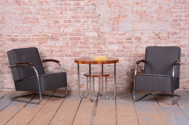 Vyrobeno v dílně Mücke-Melder v Československu, tato křesla jsou dokonalým spojením elegance, komfortu a průkopnického přístupu Bauhausu. Po odborné renovaci jsou funkční a připravené stát se výjimečným prvkem v jakémkoli interiéru inspirovaném modernismem.