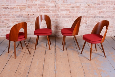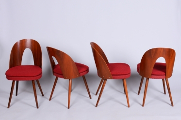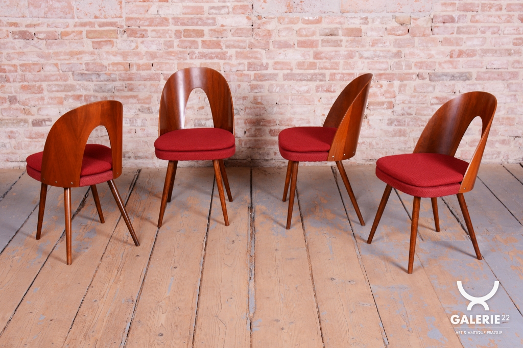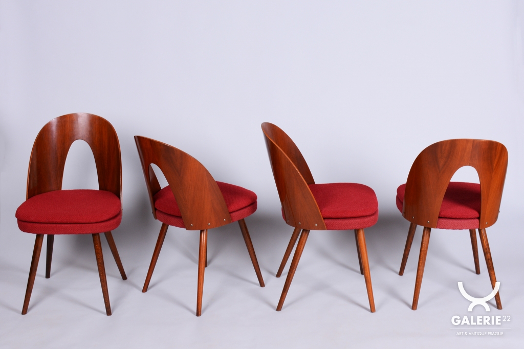 Tento set čtyř židlí z období Mid-Century Modern pochází z poloviny 20. století a je dílem renomovaného architekta Antonína Šumana. Konstrukce z kvalitního ořechového dřeva vyniká elegantními liniemi a precizním řemeslným zpracováním. Židle kombinují nadčasový design s vysokou funkčností, což z nich činí ideální doplněk do interiérů s retro i moderním nádechem.